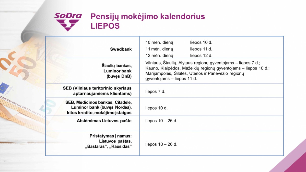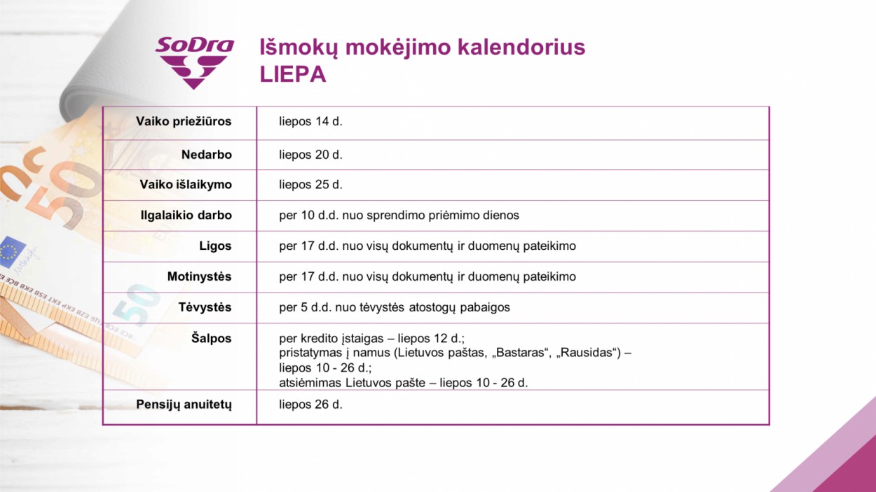 Kaip ir kiekvieną mėnesį, ,,Sodra" skelbia, kada gyventojai sulauks išmokų liepos mėnesį. Informacija dalijamės ir mes:
