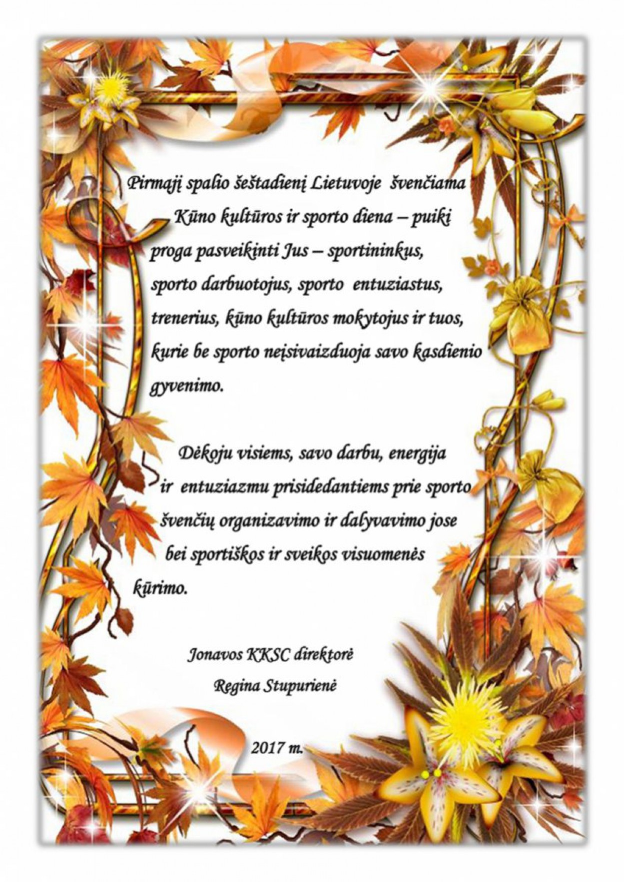 Pirmąjį spalio šeštadienį Lietuvoje švenčiama Kūno kultūros ir sporto diena. Lietuvos Respublikos Seimo sprendimu, ši diena į atmintinų datų sąrašą įtraukta 2008 m. Pirmasis spalio šeštadienis pasirinktas todėl, kad 1934 metų spalio 1 d. Lietuvoje pradėjo veikti pirmoji valstybinė sporto įstaiga – Kūno kultūros rūmai. Jų tikslas – ugdyti sveiką ir išauklėtą tautą.