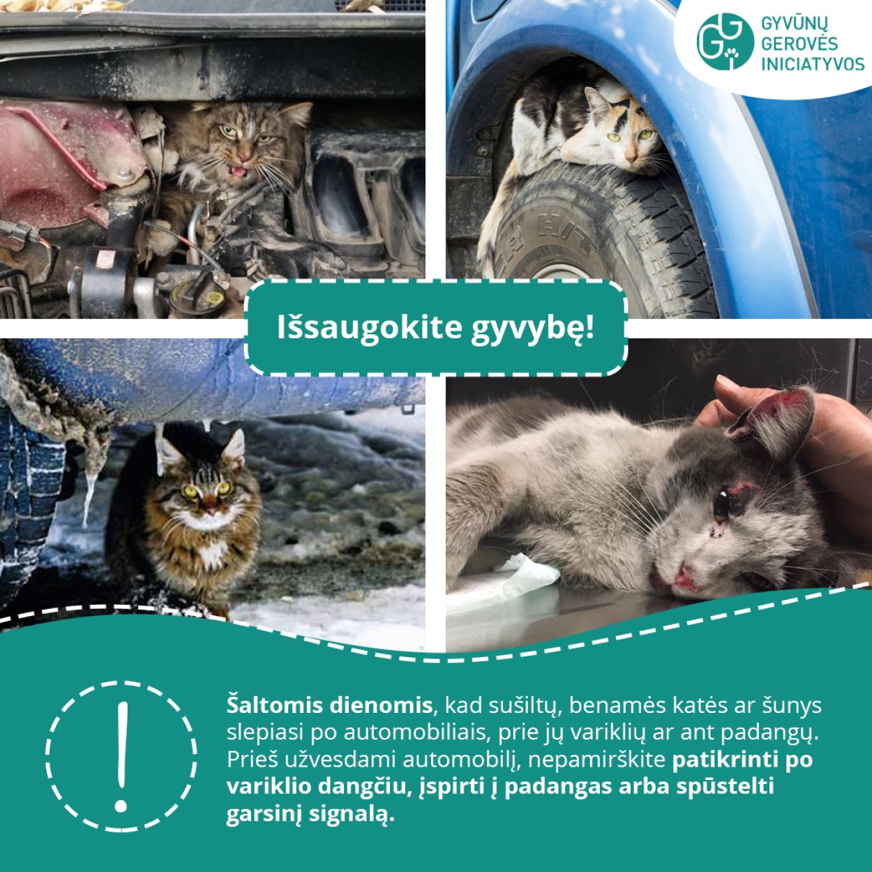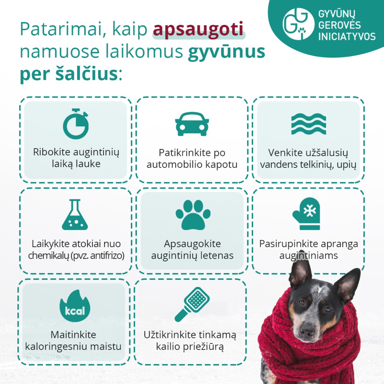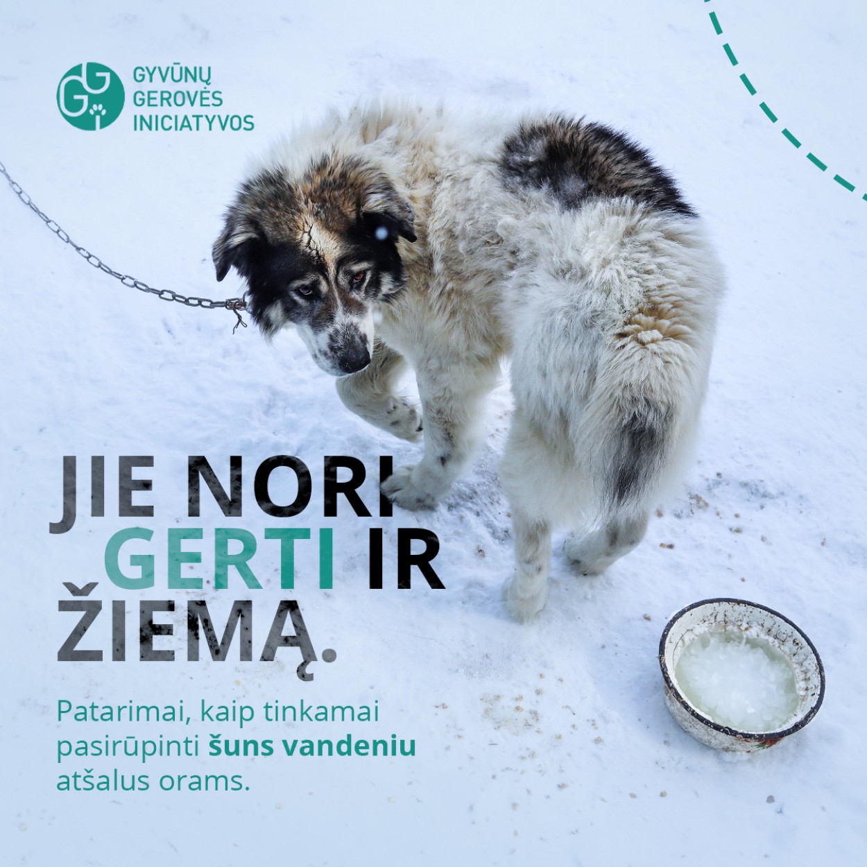 „Ypatingai liūdna, kad kaip savanoriška organizacija, deja, visiems gyvūnams padėti neturime pajėgumų, todėl labai prašome gyventojų pastebint šąlantį gyvūną paprašyti gyvūno savininkų pagerinti šuns laikymo sąlygas, o esant -15°C ir daugiau įvesti šunį į patalpą. Jei pakalbėti su gyvūno savininku nėra galimybės ar jis nesutinka padėti gyvūnui, svarbu kuo greičiau kreiptis į Valstybinę maisto ir veterinarijos tarnybą, seniūnijų seniūnus ir seniūnaičius. Jei situacija kritinė ir gyvūnui gresia suluošinimas ar žūtis – į Lietuvos policiją“ – apie keturkojus, kuriems būtina pagalba pasakoja GGI vadovė.