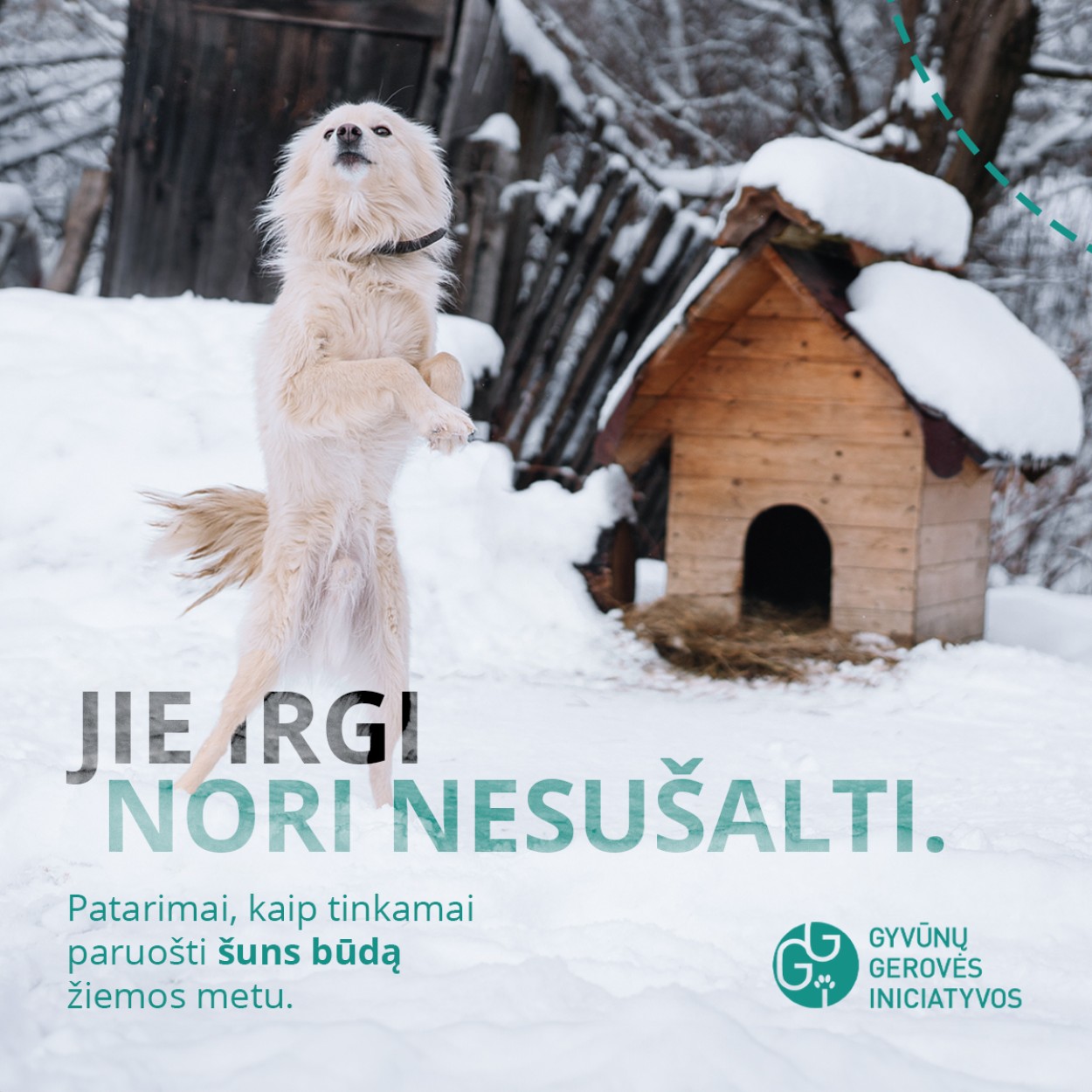 „Šiuo laikotarpiu gauname daug pranešimų apie prie būdos paliktus šalti šunis, neturinčius tinkamos būdos. Kai kurie vaizdai šokiruoja: gyvūnai iki kaklo užsnigti ir negali net pajudėti. Tokie pranešimai ateina iš visos Lietuvos“ – pasakoja GGI vadovė.