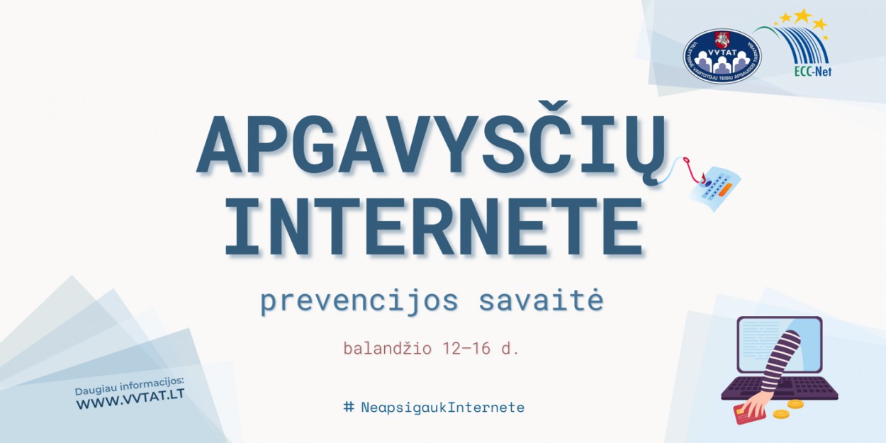 Valstybinė vartotojų teisių apsaugos tarnyba (VVTAT) ir Europos vartotojų centras Lietuvoje (EVC) š. m. balandžio 12–16 d. organizuoja jau tradicine tapusią Apgavysčių internete prevencijos savaitę #NeapsigaukInternete. Trečius metus organizuojamoje švietimo kampanijoje šiemet didžiausias dėmesys skiriamas vartotojų teisių apsaugai socialiniuose tinkluose ir skelbimų portaluose, taip pat klaidinančios reklamos bei nesąžiningos komercinės veiklos pinklėms.