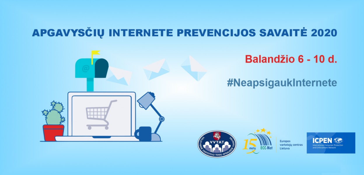 Valstybinė vartotojų teisių apsaugos tarnyba (toliau – VVTAT) kartu su Europos vartotojų centru Lietuvoje (toliau – EVC) š. m. balandžio 6–10 d. skelbia Apgavysčių internete prevencijos savaitę – #NeapsigaukInternete. Švietimo kampanija siekiama atkreipti visuomenės dėmesį į šiuo sudėtingu laikotarpiu, visame pasaulyje susiduriant su COVID-19 infekcija, internete sparčiai plintančius pavojus ir apgavystes.