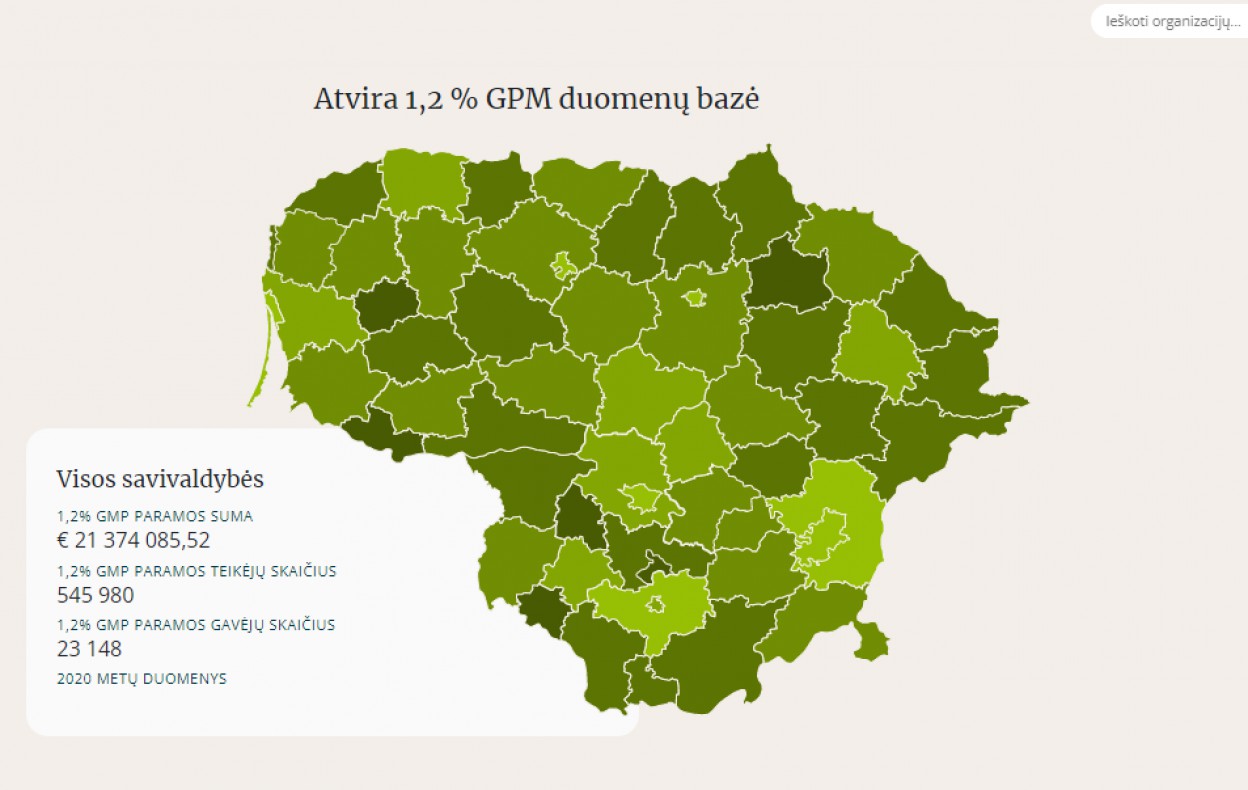 Šis specializuotas tinklalapis – tai atvira duomenų bazė, inicijuota Nevyriausybinių organizacijų informacijos ir paramos centro (NIPC), veikiančio nuo 1995 m., siekiant stiprinti nevyriausybinių organizacijų sektorių ir skatinti filantropijos tradicijas Lietuvoje rezultatas. Šioje bazėje pateikta Valstybinės mokesčių inspekcijos bei VĮ „Registrų centras“ atvirų duomenų informacija.