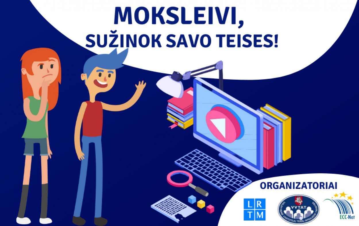 Kas yra vartotojas ir kokios jo teisės? Kas tai yra klaidinanti ir nepageidaujama reklama? Kaip atpažinti netikrus komentarus? Į šiuos ir kitus klausimus Teisingumo ministerija kartu su Valstybine vartotojų teisių apsaugos tarnyba bei Europos vartotojų centru Lietuvoje siūlo atsakyti vyresnių klasių moksleiviams. Iniciatyva „Moksleivi, sužinok savo teises!“ atvers unikalią galimybę visų mokyklų moksleiviams nuotolinėse pamokose patraukliu būdu sužinoti apie vartotojams iškylančius iššūkius.