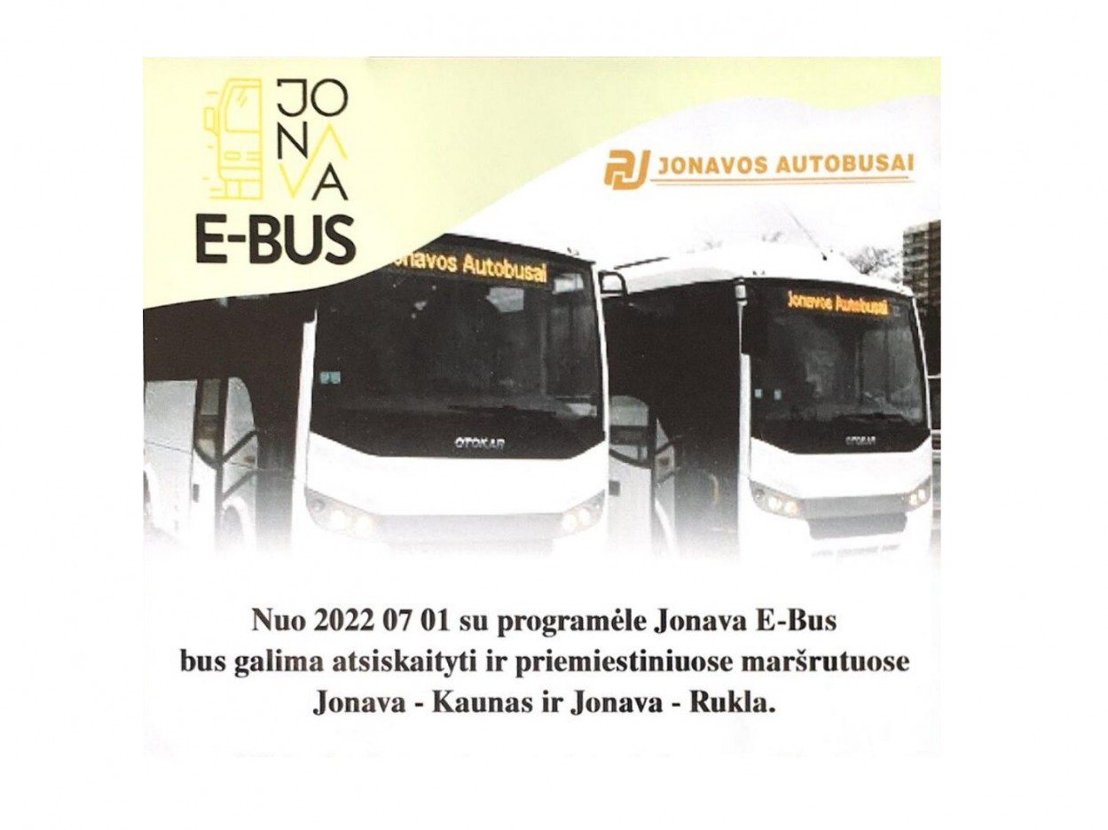 Nuo šių metų liepos 1 dienos su programėle „Jonava E-Bus“ bus galima atsiskaityti ir priemiestiniuose maršrutuose vykstant iš Jonavos iki Kauno, Kalniečių ir Ruklos, ir atgal.