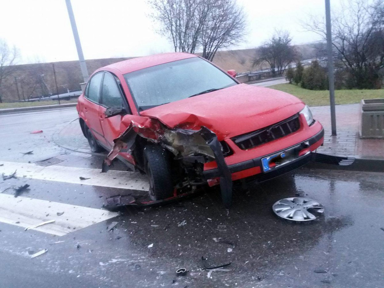 J.Basanavičiaus gatve važiuojančius jonaviečius šeštadienį stebino ties sankryža su Ateities gatve paliktas sudaužytas „VW Passat“ automobilis.