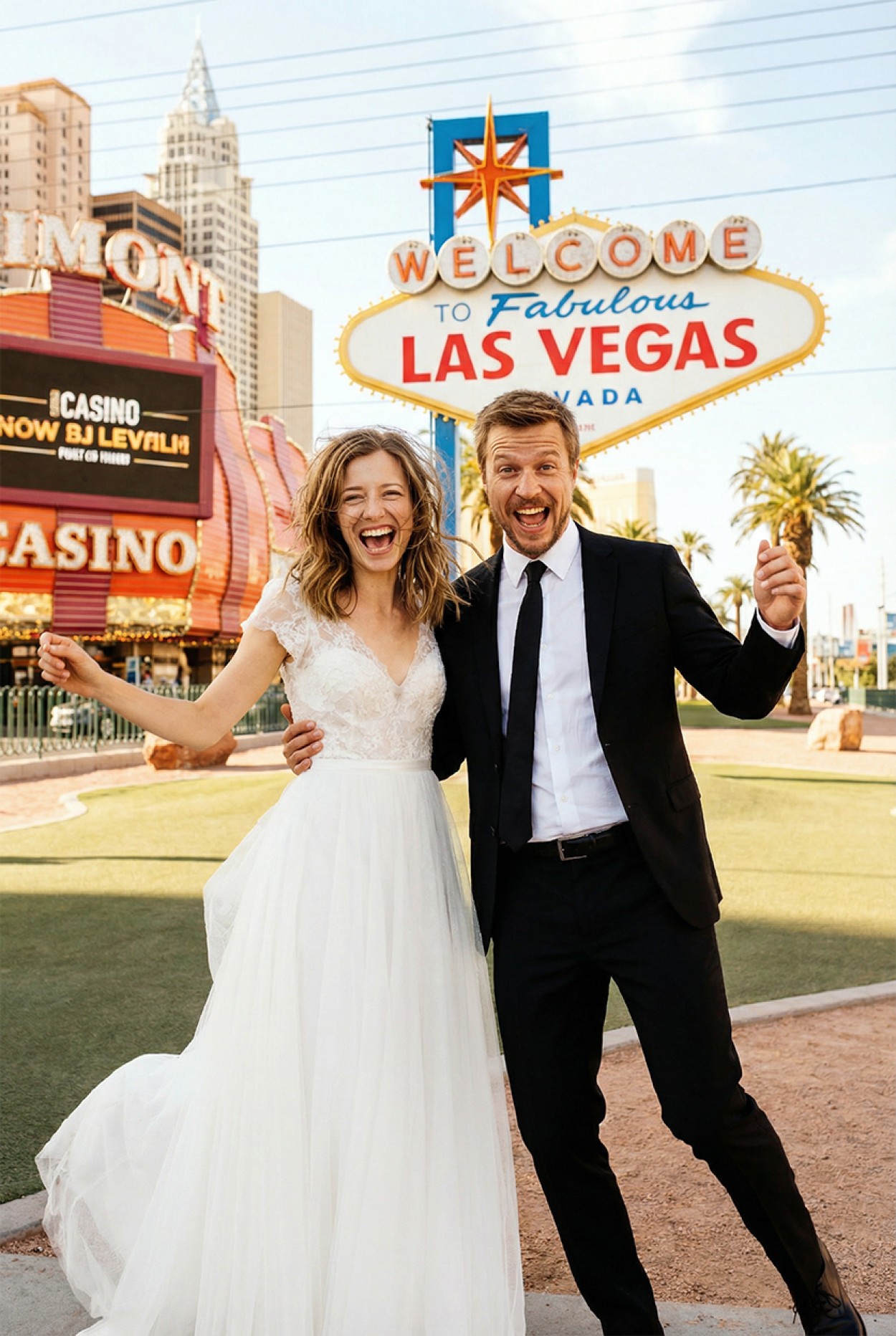 Nusprendžiau sukurti seriją nuotraukų, kuriose ta pati pora fotografuojasi savo vestuvių dieną skirtingose vietose. Ne bet kokiose, parinkau įdomesnes ir egzotiškesnes - Norvegijos kalnuose, paplūdimyje Havajuose, itališko kalnų ežero pakrantėje, neonais žibančiame Las Vegase ir, žinoma, autentiškose Vilniaus lokacijose. Viskas per gerą valandą, be bilietų, be kelionių ir be prakaitavimo ant pliažo smėlio. Tik paraudusios nuo kompiuterio akys ir įtempti pečiai.