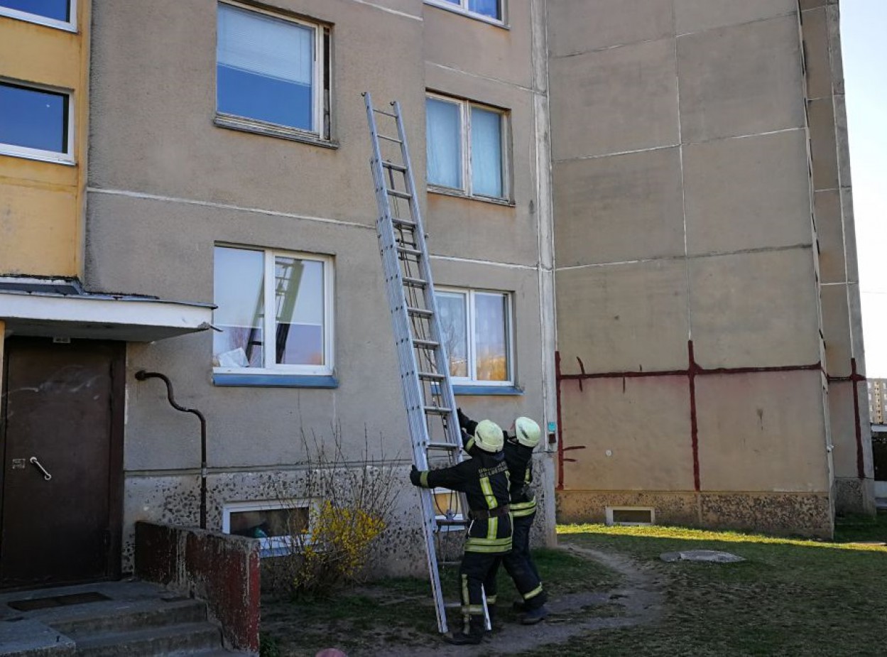 Į pagalbą iškviesti ugniagesiai gelbėtojai, kurie, kopėčių pagalba, iškėlė moterį per langą iš trečio aukšto.