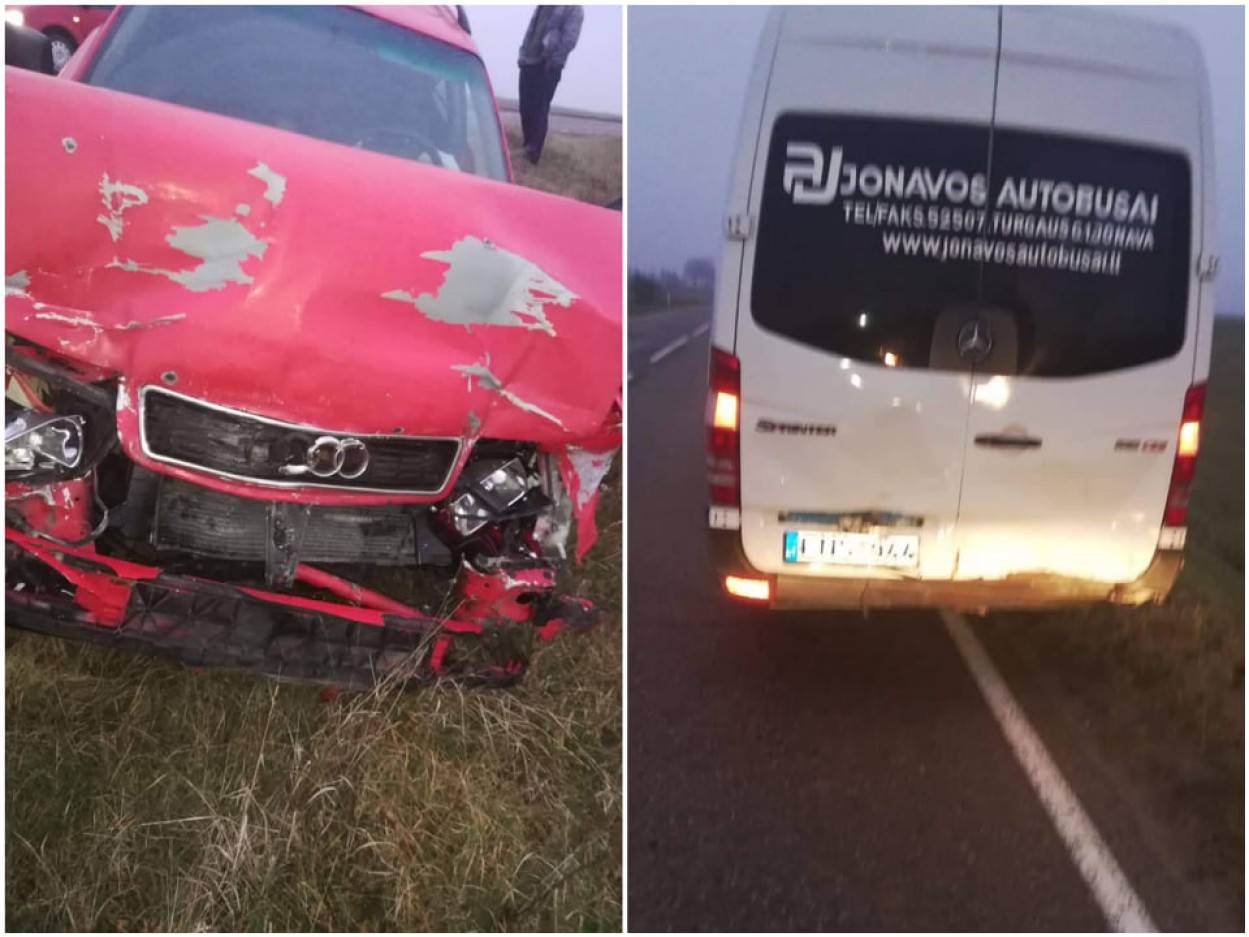 Kelyje Jonava - Šėta, ties Mimalių gyvenviete, apie 7 val. 30 min. į važiuojantį ,,Jonavos autobusų" parko mikroautobusą iš galo atsitrenkė ,,Audi" 80.