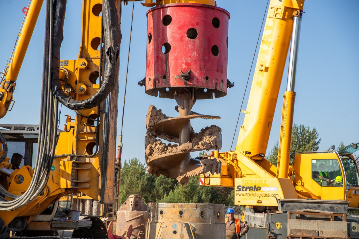 Statybos darbus vykdo Italijos kompanija „Rizzani de Eccher“. Siekiama, kad polių įrengimo darbai būtų baigti kitų metų pavasarį. Esant tinkamoms oro sąlygoms per dieną įrengiami vienas-du poliai. Statybvietėje darbai atliekami rotorine gręžimo mašina, kurios aukštis siekia net 27 metrus.
