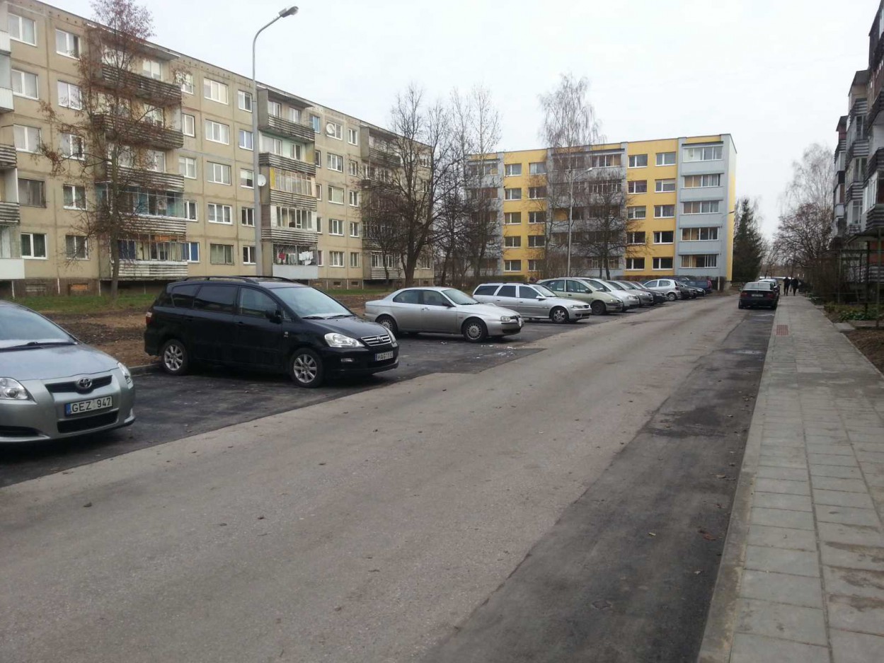 Lietavos gatvės 17 ir 23 namų kiemai – sutvarkyti: įrengta daugiau vietų automobiliams, suremontuoti šaligatviai. Dviejų kiemų sutvarkymas savivaldybei kainavo apie 75 tūkst. eurų.