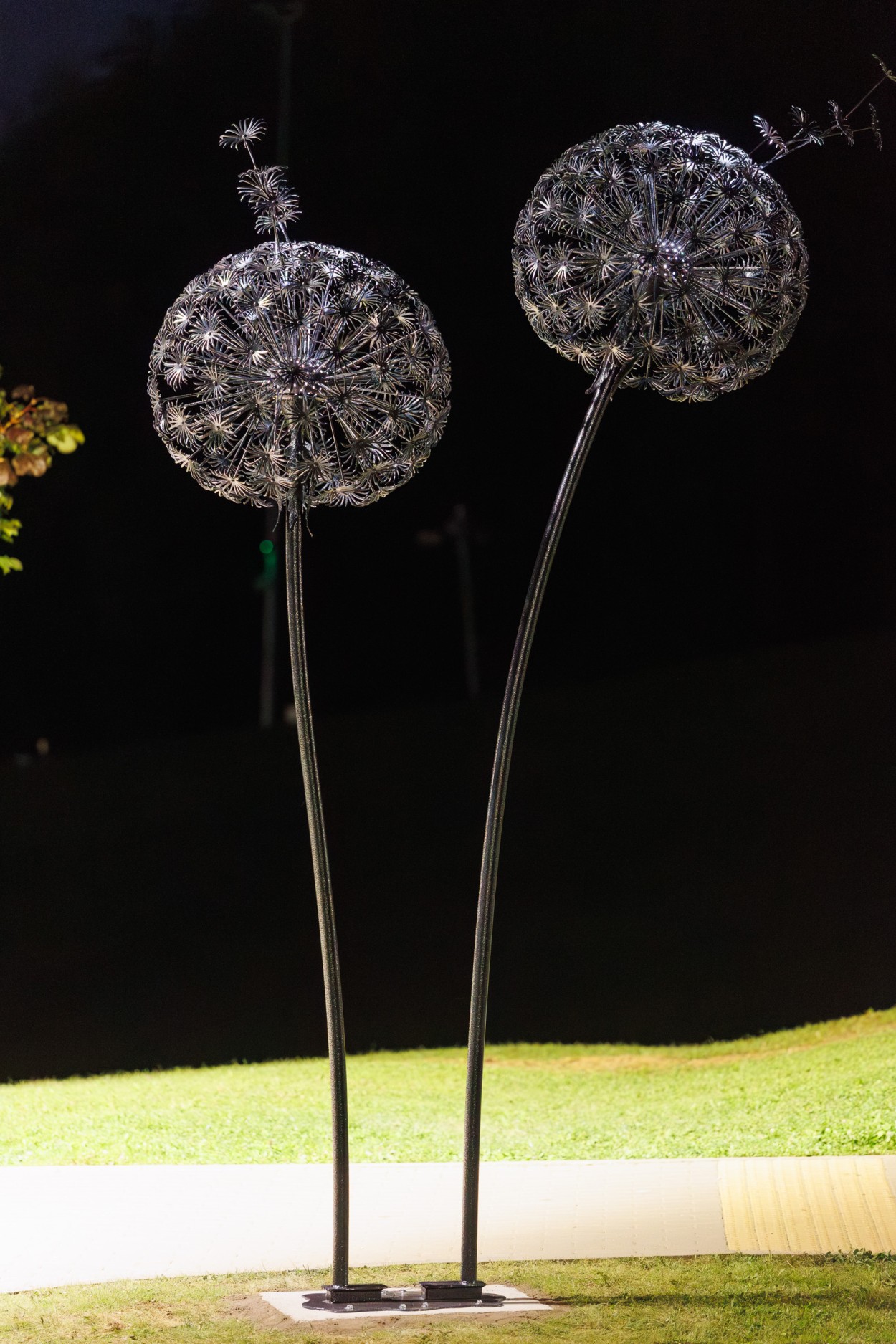 „Svajonių žiedai“ – tai metalinė figūra, primenanti pienės pūkus arba Jonavoje labai populiarius ir mėgstamus, miesto identiteto dalimi tapusius vasaros pradžioje pražįstančius česnakų burbulus, įsikūrė laiptų, jungiančių užimtumo tarnybą ir Joninių slėnį, aikštelėje. Žiedai tamsoje skleidžia subtilią šviesą, todėl matomi bus ir naktį.