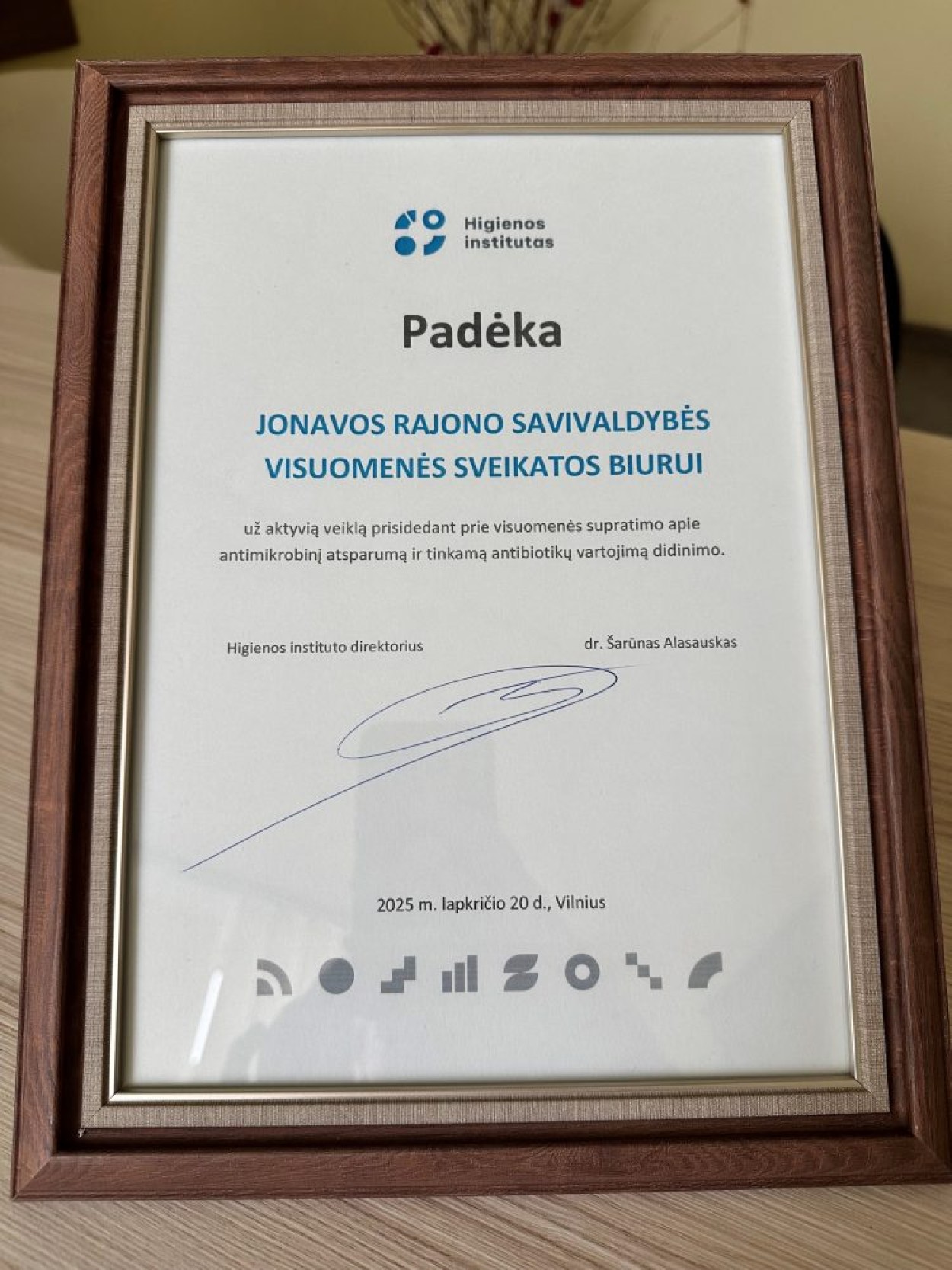 Džiaugiamės šiuo įvertinimu ir tęsiame savo darbą, siekdami stiprinti visuomenės sveikatą Jonavos rajone.