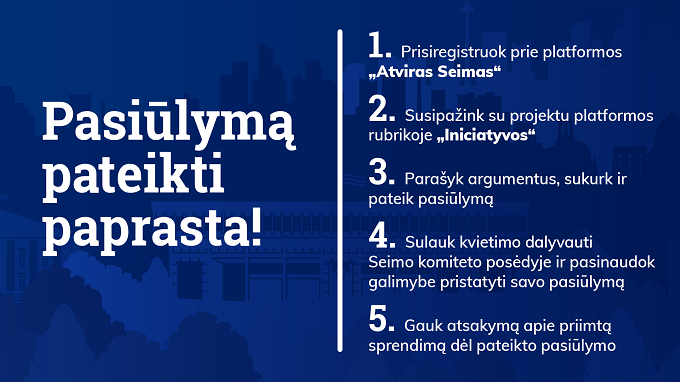 Gyventojai savo pasiūlymus dėl šios iniciatyvos platformoje „Atviras Seimas“ turi galimybę pateikti iki 2024 m. kovo 4 d.