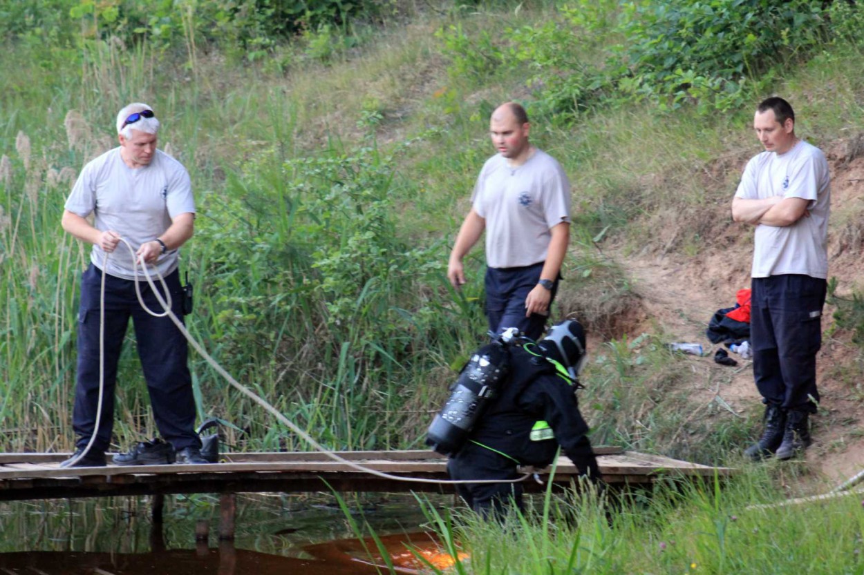 Narai žvalgo tvenkinio dugną, tačiau kol kas paskendusio žmogaus rasti nepavyko. Vietos gyventojai sako, kad pagal drabužius negali pasakyti, kas toks gali būti šis vyras. Žmonės patikrino kelis įtarimų sukėlusius vietos gyventojus, tačiau visi jie rasti namuose.