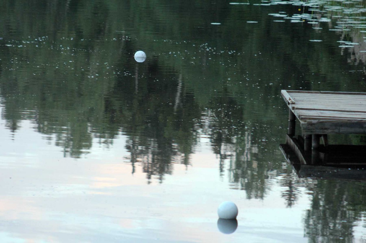 Narai dirba tvenkinyje, esančiame už vaikų lopšelio darželio.