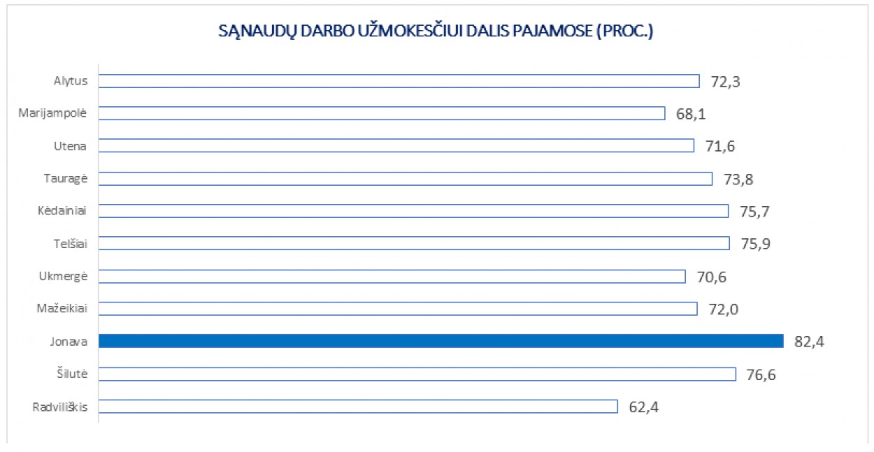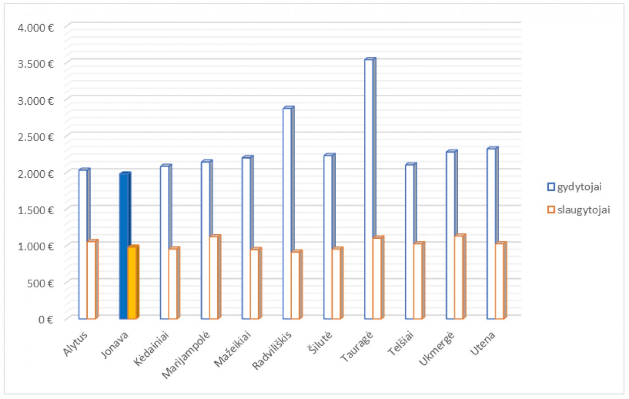 Akivaizdu, kad Jonavos ligoninė darbo užmokesčiui išleidžia ženkliai didesnę pajamų dalį, nei kitos ligoninės, tačiau tai niekaip neatsispindi gydytojų darbo užmokestyje (žiūrėti antrą lentelę).