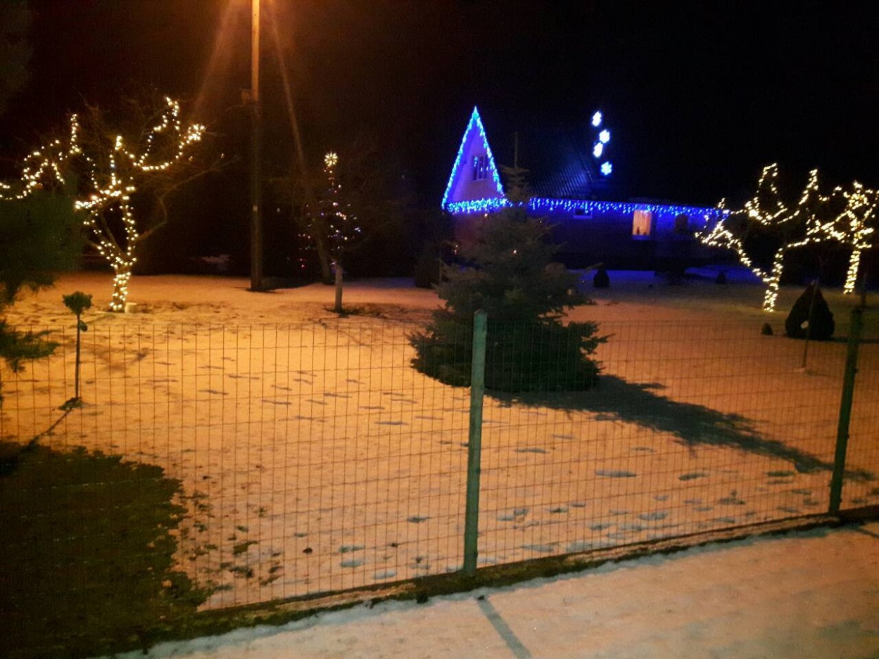 Šalia, Sodžiaus g. 15, Jolitos ir Daliaus Bulatų namo priekį taip pat puošia kalėdinė kompozicija.