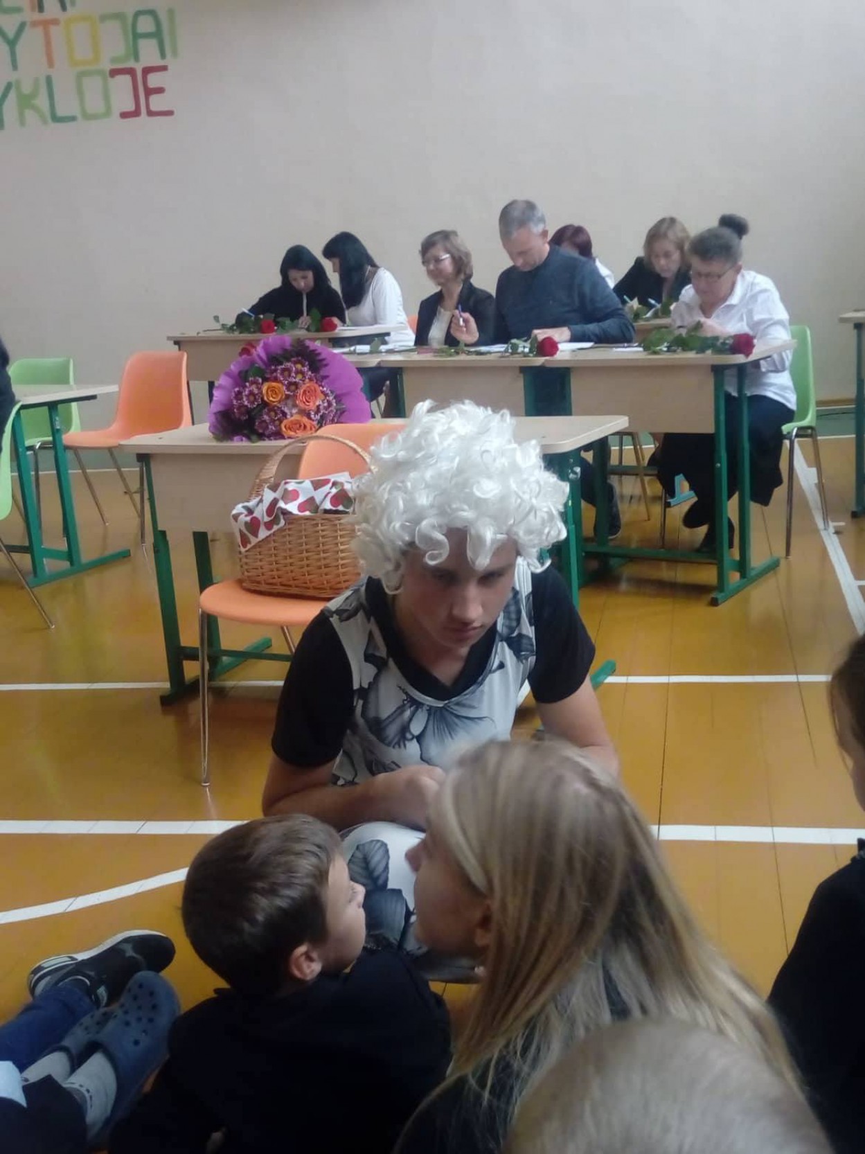 Buvusi "mokinė" Elena Tuzovienė linkėjo sėkmės, mokytojų klasei padovanojo arbatų rinkinius bei įvairių vitaminų šaltinių puikiai savijautai palaikyti. Pertraukų metu gerą nuotaiką suteikė pianistė Rugilė Elžbieta ir akordeonistė Eglė. Pasibaigus pamokoms, klasės vadovė Gabija ir seniūnė Dalia padėkojo pedagogams už dalyvavimą klasės veikloje ir padovanojo „priemones“ etatinio mokytojų darbo veikloms fiksuoti.