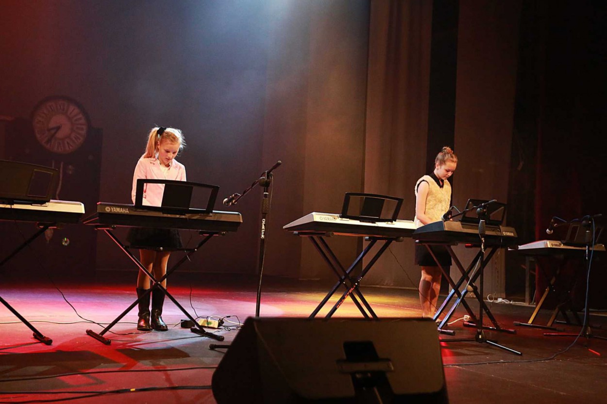 Ant scenos lipo nuo mažiausiųjų 4 mėn.YAMAHA muzikos mokyklos mokinukų su mamytėmis iki paauglių, grojančių klavišiniais instrumentais. Kiekvienas užsiėmimas pakvietė apsilankyti skirtingose pasaulio šalyse ir laikmečiuose, pasigrožėti koncertuojančiais vaikais ir jų tėveliais.