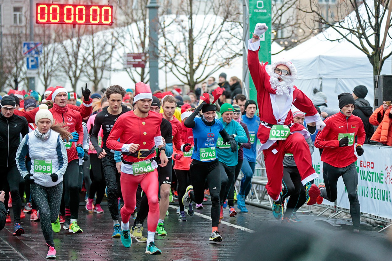 Tradiciniai Kalėdų seneliai, snieguolės, nykštukai, originalumo nestokojantys gyvūnų kostiumai, vaikiškų filmukų personažai, elfai. Sostinės centre per 3000 kostiumuotų bėgikų pirmieji pasitinka šventes. Nuo Vinco Kudirkos aikštės duotas startas jau 42-ajam „Eurovaistinės Kalėdiniam bėgimui“.