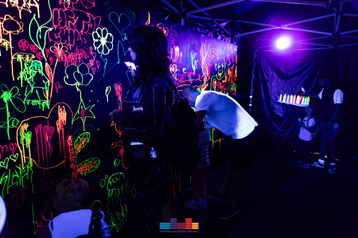Lankytojai galėjo sudalyvauti tapymo aliejiniais dažais tapymo edukacijoje kurią vedė profesionalus tapytojas Leonidas Alekseiko. Jonavos kultūros centro darbuotojos kvietė kurti bendrą tamsoje šviečiantį paveikslą, krašto muziejaus darbuotojos mokė gaminti šviečiančius žibintus, mokė pynimo makrame technika, kvietė susirišti šviesos simbolį šiaudinį sodą, menininkas Feliksas Paulauskas pristatė patyriminę meninę instaliaciją, Jonavos kultūros centro savanoriai vaišino sauso ledo arbata. Lankytojai galėjo apžiūrėti tapytojui Antanui Samuoliui skirtą parodą bei jo biografiją pristatantį filmuką.