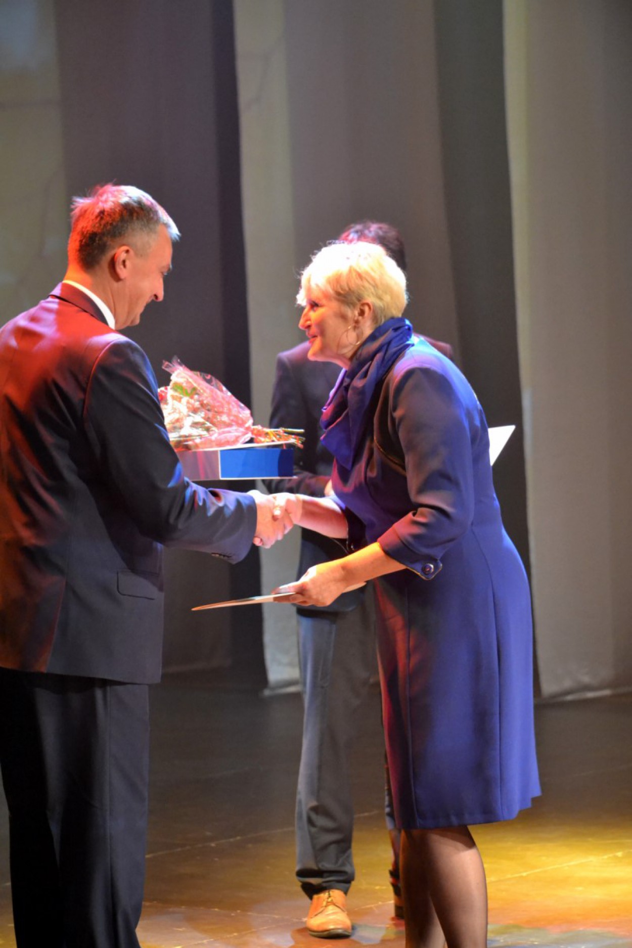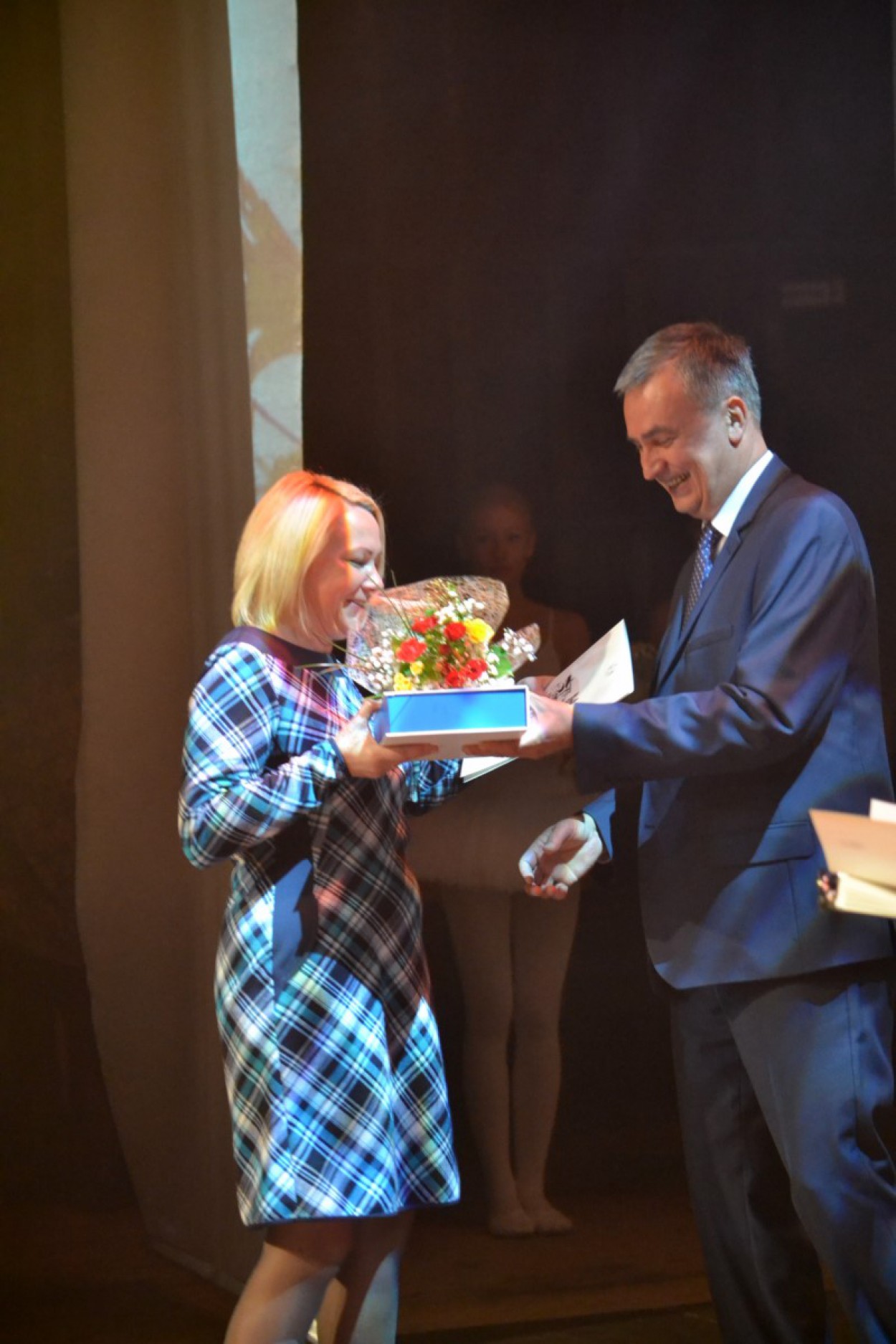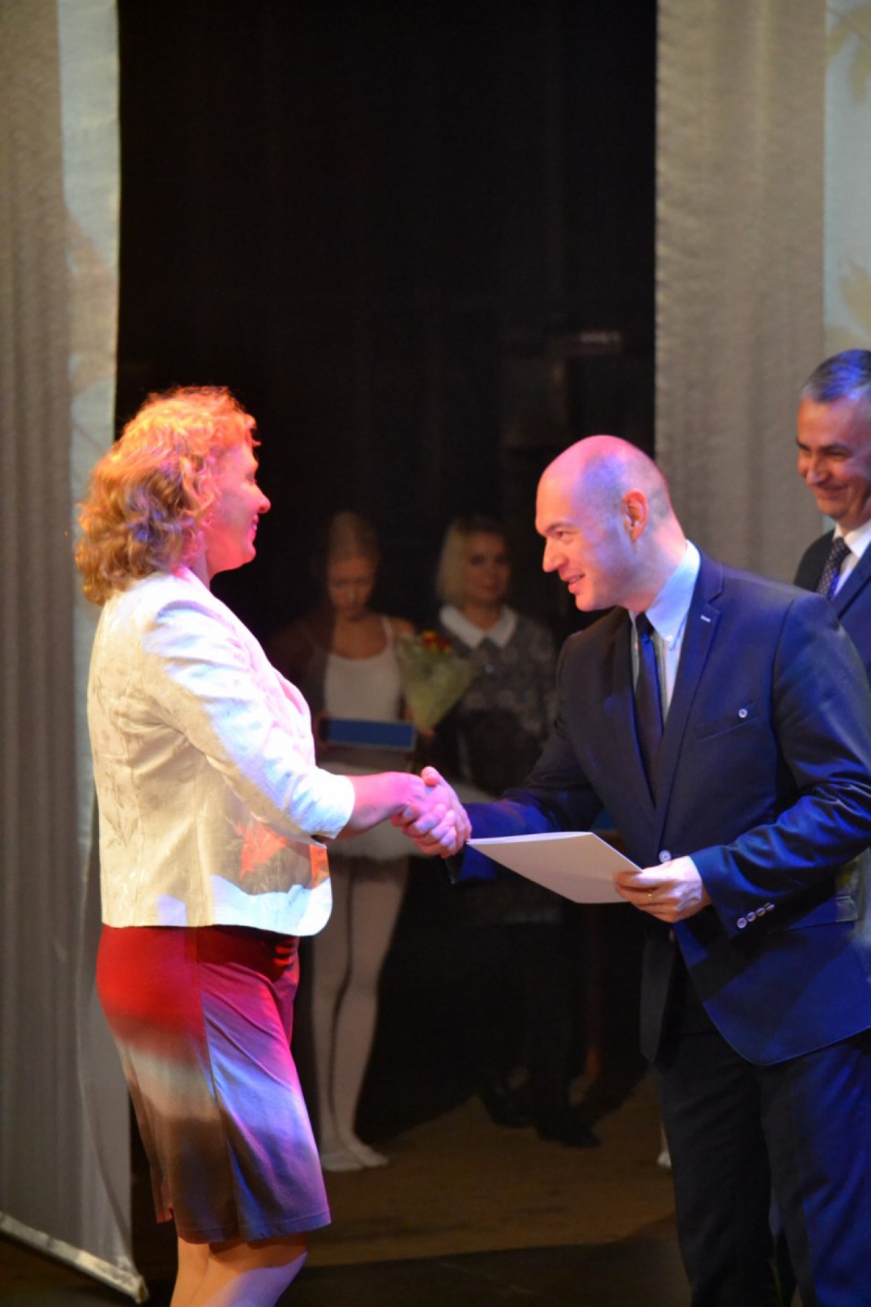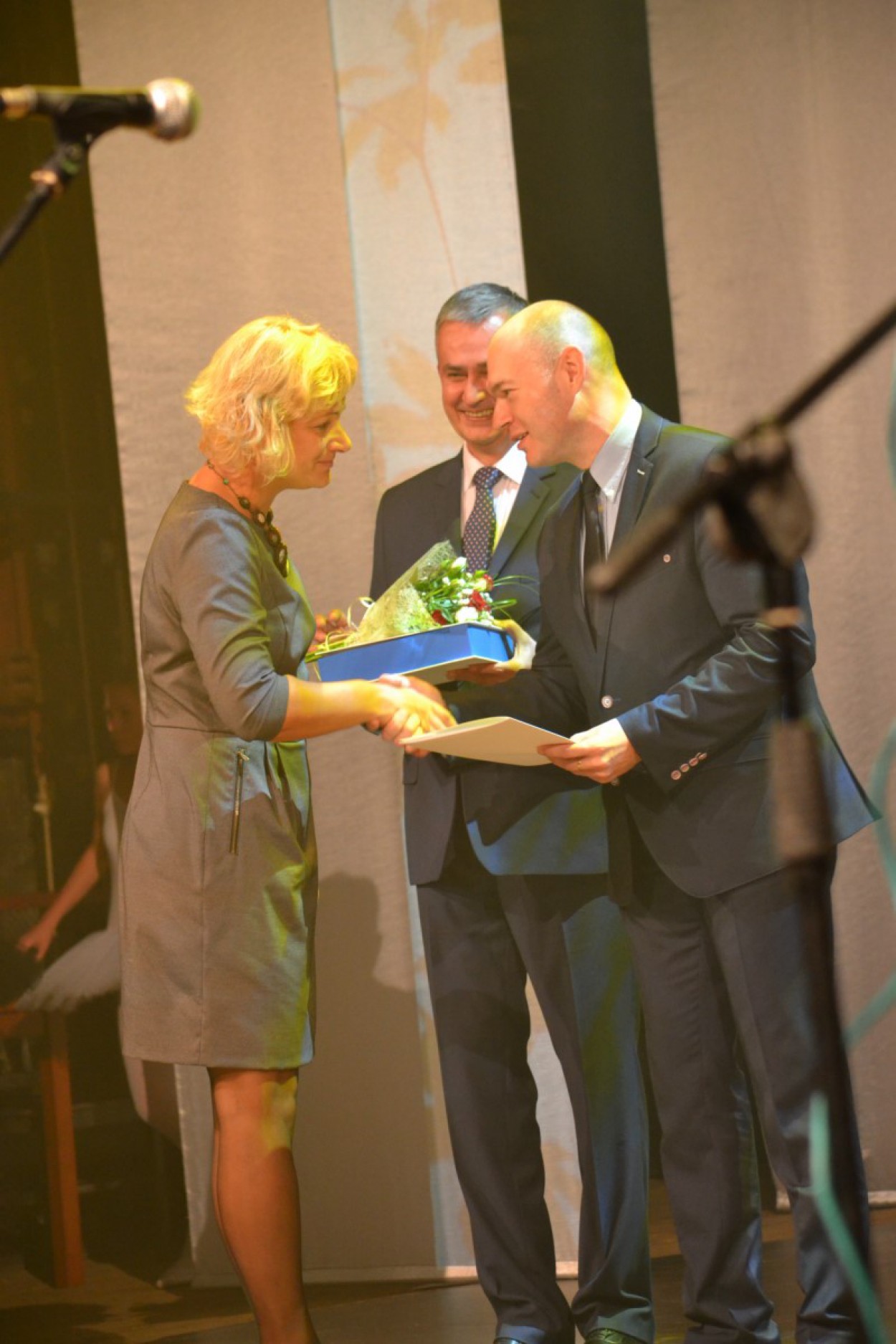 Mokytojus sveikino rajono vicemeras Eugenijus Sabutis bei Švietimo, kultūros ir sporto skyriaus vedėjas Vytautas Žebrauskas.