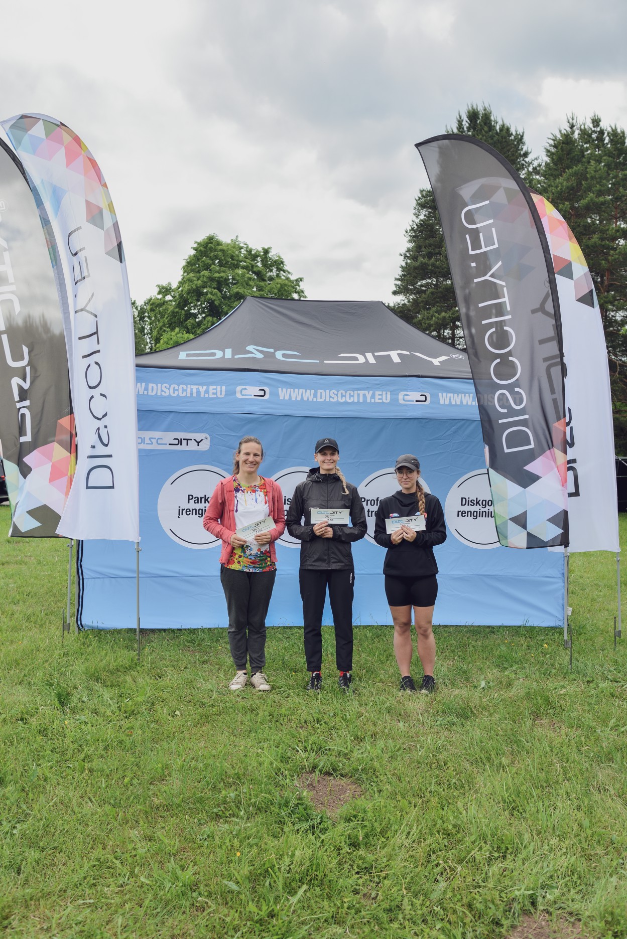Moterų pogrupyje užtikrintai laimėjo aukščiausią PDGA reitingą turėjusi latvė Elena Karluša (+8), tik prieš savaitę laimėjusi ir pirmą Lietuvos diskgolfo taurės etapą Panevėžyje. Antra liko lietuvė iš Šveicarijos (Jonavos raj.) Mireta Jurgelevičiūtė (+18), trečioje vietoje – klaipėdietė Oksana Žukauskienė (+24).