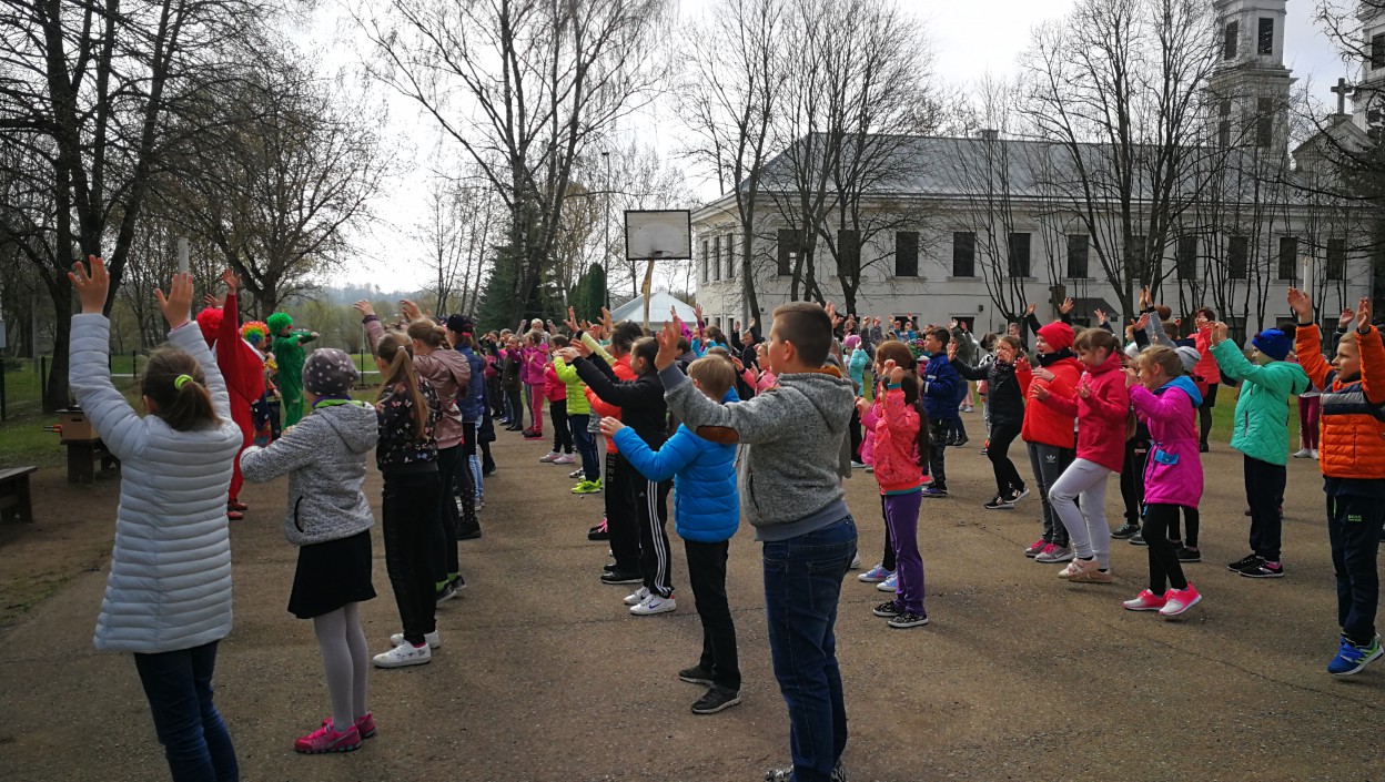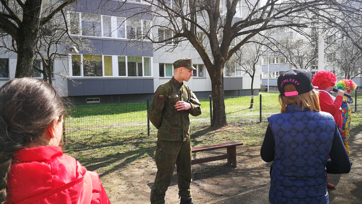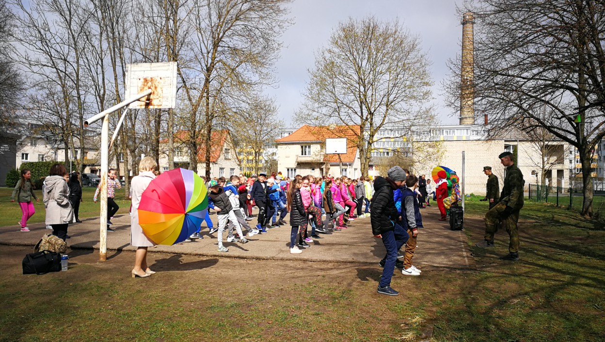 Balandžio 16 dieną startavusi Raudonos nosies akcija šiandien jau persikėlė į Jonavos Panerio pradinę mokyklą. Akcijos klounai kartu su Kunigaikščio Vaidoto mechanizuoto pėstininkų bataliono kariais pradinukams vedė tikrą kareivišką rytinę mankštą.