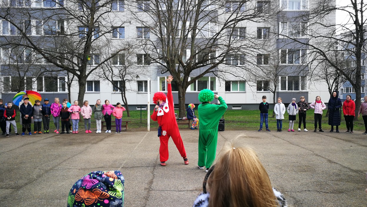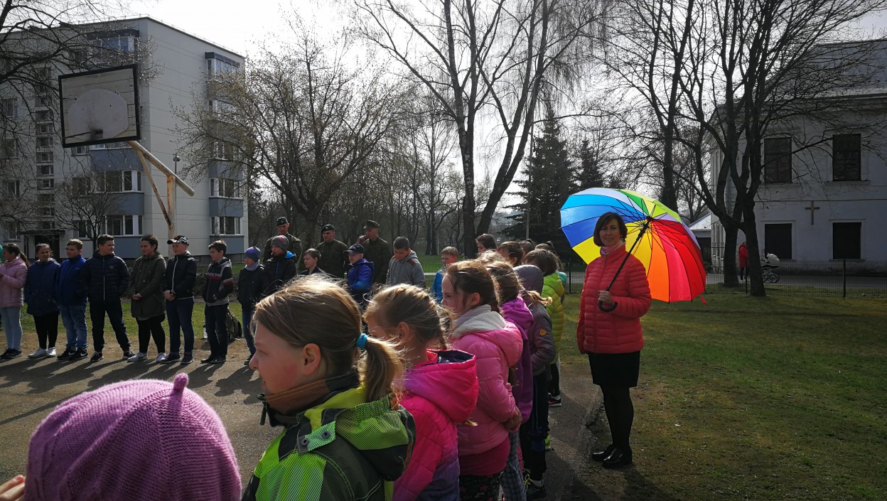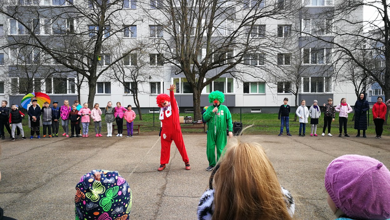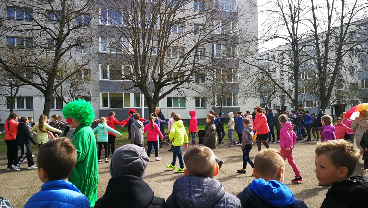 Balandžio 16 dieną startavusi Raudonos nosies akcija šiandien jau persikėlė į Jonavos Panerio pradinę mokyklą. Akcijos klounai kartu su Kunigaikščio Vaidoto mechanizuoto pėstininkų bataliono kariais pradinukams vedė tikrą kareivišką rytinę mankštą.