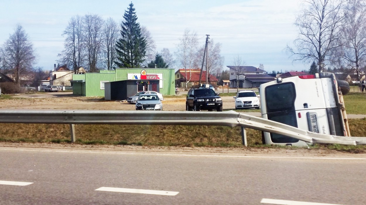 Mikroautobusas nuvažiavo nuo kelio ir virto. Jo vairuotoja pristatyta į gydymo įstaigą, tačiau rimtų sužalojimų moteris išvengė - po apžiūros ji išleista gydytis ambulatoriškai.