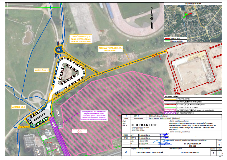 Rengiant projektinius pasiūlymus, projektuotojams UAB „URBAN LINE“ pateikti pagrindiniai reikalavimai, vienas jų - numatyti automobilių stovėjimo aikšteles prie Sodų g. 85 (aikštelė Nr. 1) ir prie dviračių ir pėsčiųjų tako (Šviesos tako) (aikštelė Nr. 2).