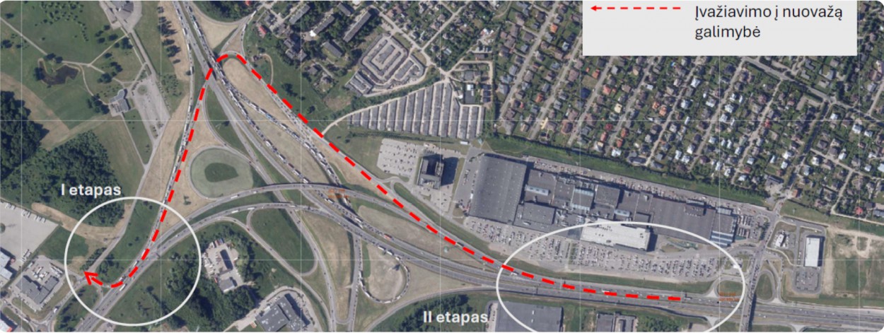 Šiuo metu minėtoje nuovažoje yra įgyvendinami eismo organizavimo pakeitimai: buvo įrengti nauji kelio ženklai, nuvalytas senas dangos ženklinimas. Artimiausiomis dienomis, vairuotojų patogumui, kelio danga bus ženklinama iš naujo, remiantis atnaujinta eismo organizavimo schema.