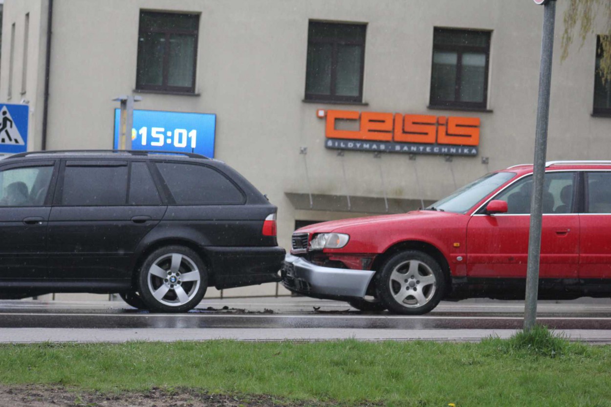 Avarija įvyko apie apie 14.20 val., kai vienas į kitą atsitrenkė du automobiliai „Audi“ ir vienas „BMW“.