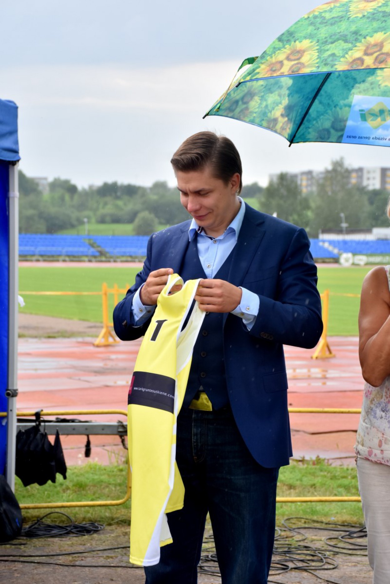 Ž. Galimovui įteikus merui tikrus paplūdimio tinklinio žaidėjo marškinėlius, sveikinimo žodį tarė Lietuvos tinklinio federacijos prezidentas Marius Vasiliauskas, kuris apžiūrėjo bei įvertino ne tik naujas tinklinio aikšteles, bet ir Jonavos areną. Tikimasis, kad svečiui infrastruktūros įvertinimas padės pritrauki į Jonavą net nacionalines, bet ir tarptautines varžybas. Aišku, LTF prezidentas M. Vasiliauskas patikino, kad planuoja čia vykdyti tokias varžybas bei tikisi didelio skaičiau tinklinio mėgėjų ir vaikų, mėgstančių paplūdimio tinklinį.