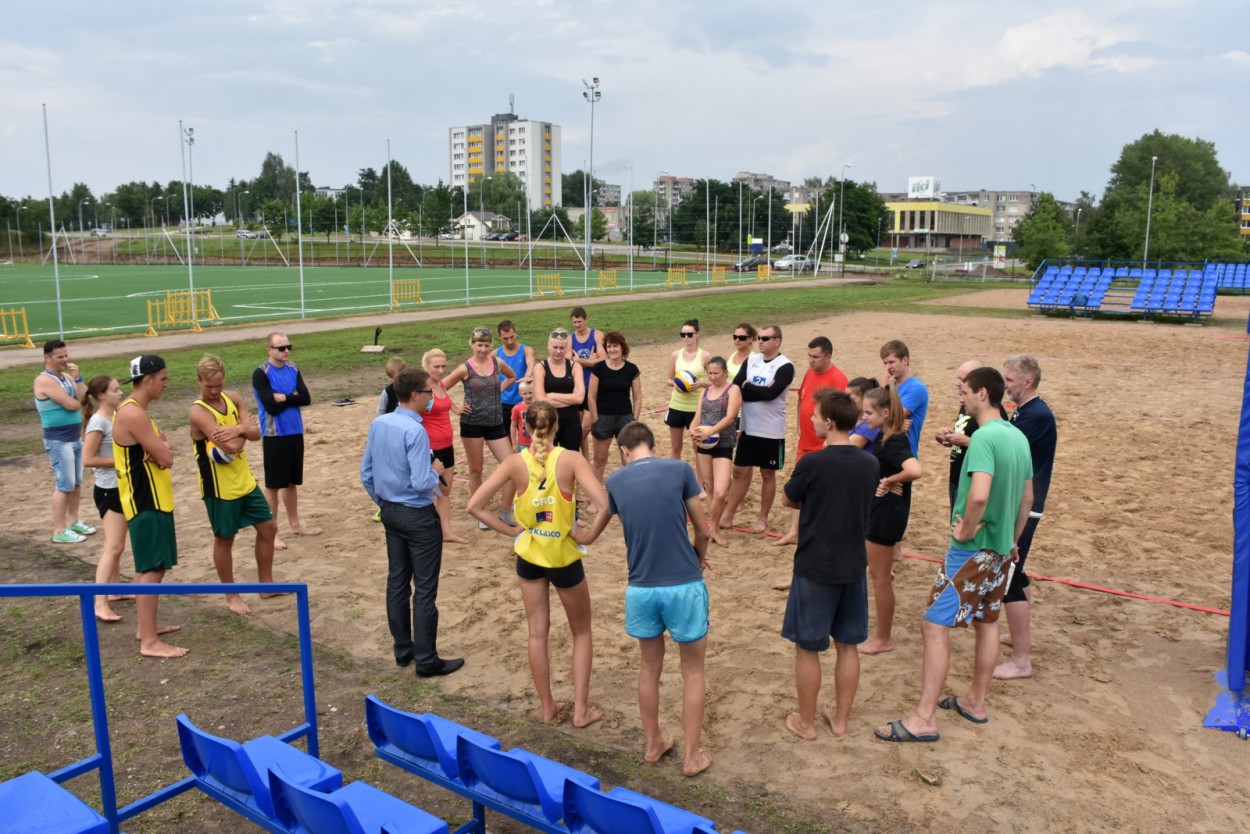 Po kalbų svečiai perkirpo juostelę ir davė pradžią paplūdimio aikštelių veiklai. Jas draugiškame mače pirmieji tą vakarą išmėgino Jonavos tinklinio mėgėjų (Merūnas Savickas, Vilius Stankevičius, Rigvita Kunevičienė) ir Jonavos rajono Tarybos narių (Laurynas Gailius, Povilas Garbauskas, Sergejus Jefimenka) komandos. Pergalę rezultatu 15:7 šventė tinklinio mėgėjai.