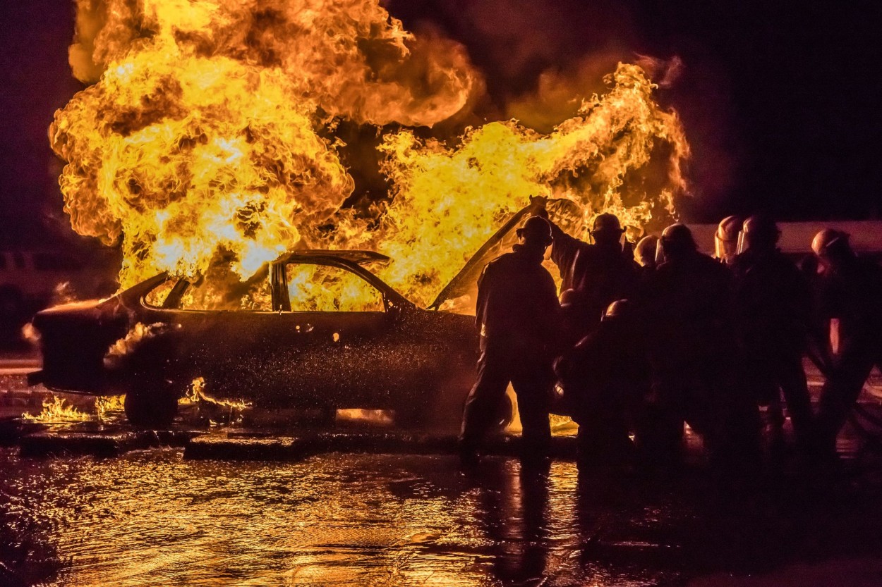 Balandžio 23-ąją gautas pranešimas, kad dega automobilis „VW Touran“, o vairuotojas gesina gesintuvu.