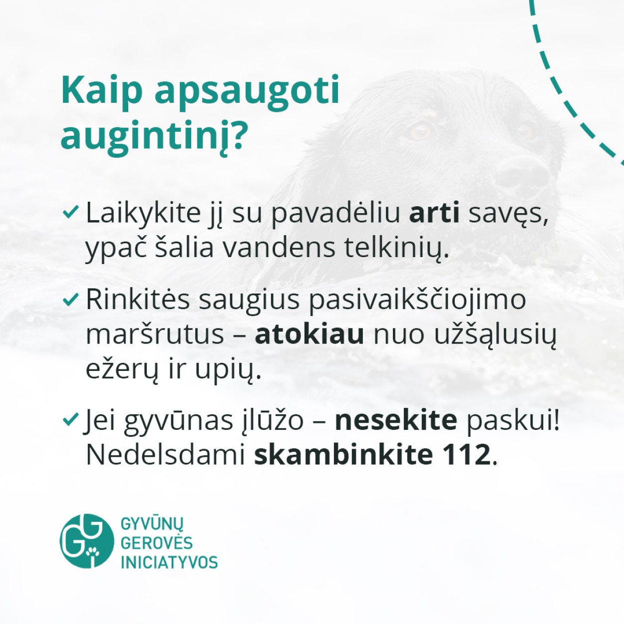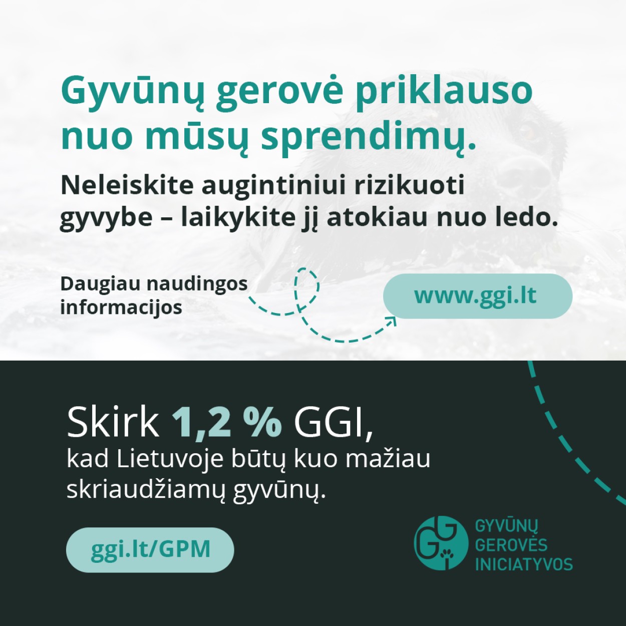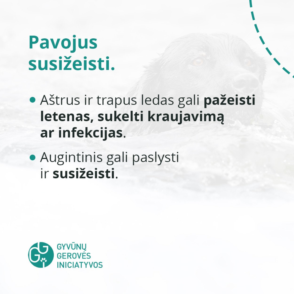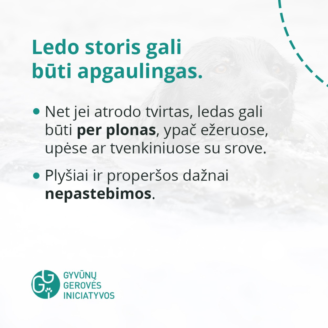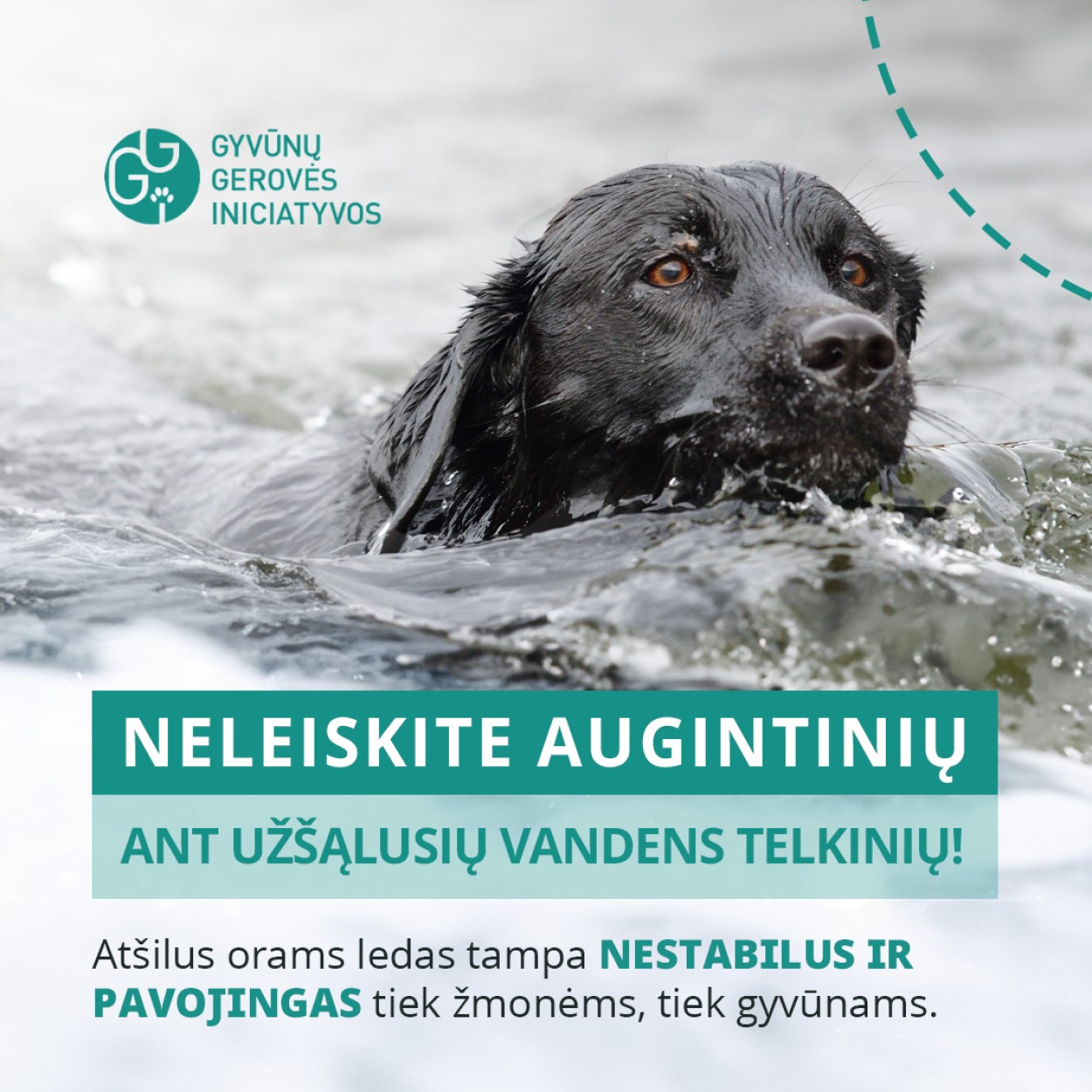 Gyvūnų gerovė priklauso nuo mūsų sprendimų. Neleiskite augintiniui rizikuoti gyvybe – laikykite jį atokiau nuo ledo.