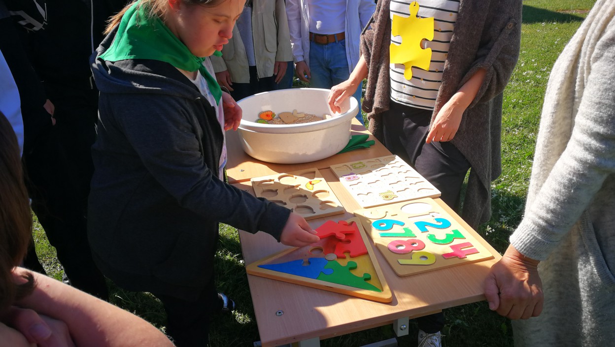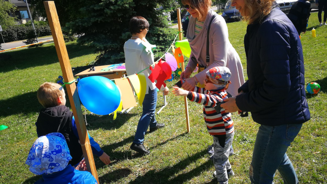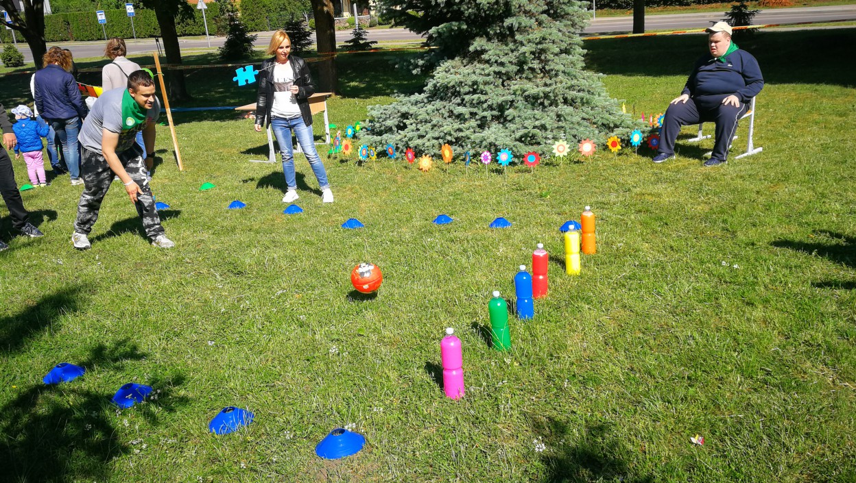 Vaikų darželių „Lakštingalėlė“, „Bitutė“, Jonavos rajono neįgaliųjų veiklos centro, Sutrikusio intelekto žmonių globos bendrijos Jonavos „Viltis“, Jonavos „Neries“ pagrindinės mokyklos specialiojo ugdymo skyriaus ugdytiniai dalyvavo kūrybinėse ir sportinėse užduotyse. Teko kuo smarkiau ir kuo daugiau numušti kėglių, užrištomis akim sudėti dėlionę, savo rankom pasigaminti aitvarus, pūsti gigantiškus muilo burbulus.
