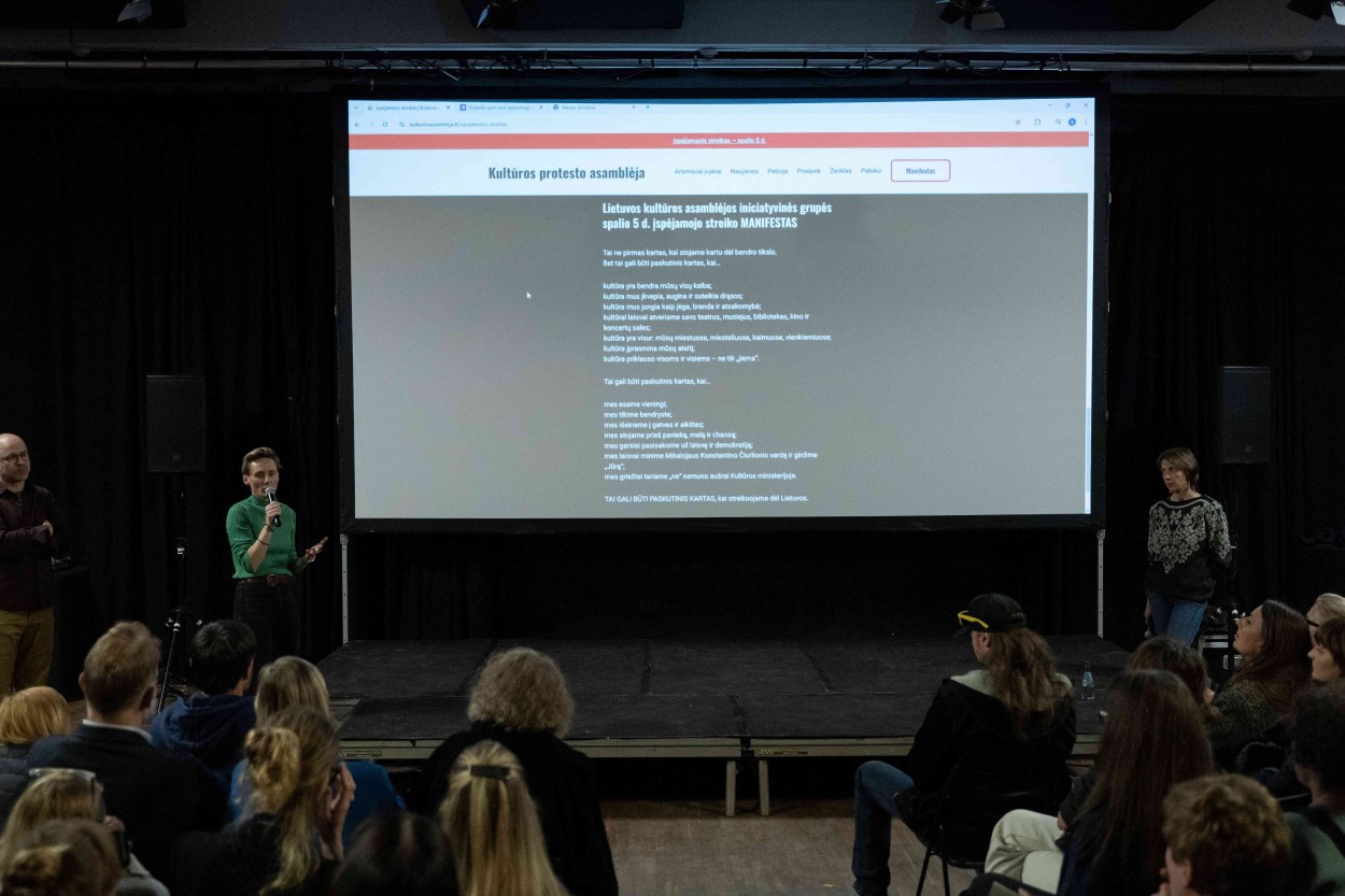 Iniciatyvinė grupė bendruomenei pristatė šią savaitę įvykusį susitikimą Prezidentūroje ir Seimo kultūros komiteto posėdį. Asamblėjoje taip pat paskelbta, jog neketinama dalyvauti premjerės Ingos Ruginienės buriamoje derybinėje grupėje, valdantiesiems atsisakant girdėti vertybinę kultūros bendruomenės poziciją. Iniciatyvinė grupė su premjere ir socialdemokratų partijos lyderiu yra pasiruošusi kalbėtis tik apie pagrindinį probleminį klausimą, visos kitos primetamos temos šiame etape nediskutuotinos.