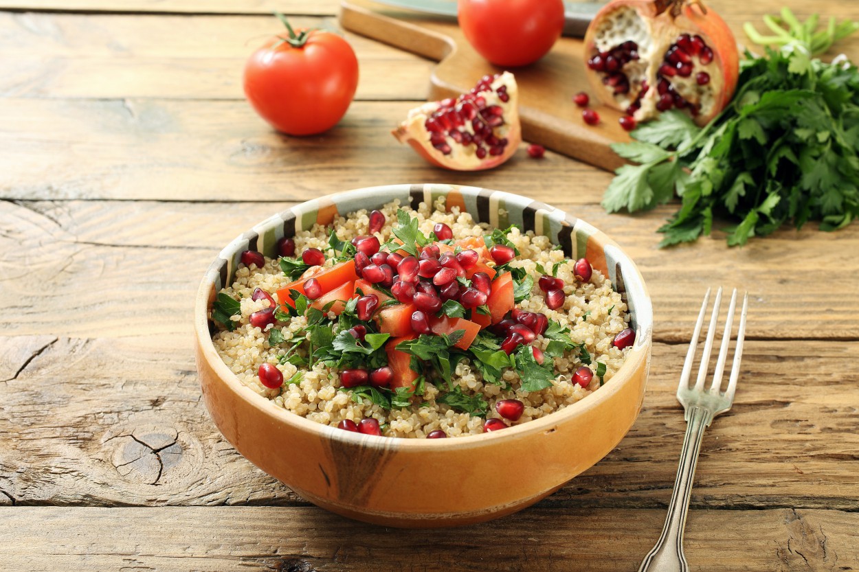Reikės: 200 g bolivinės balandos kruopų, pusės agurko, pusės granato sėklų, 1 morkos, pagal skonį – kalendros, svogūnų laiškų, alyvuogių aliejaus, druskos, pipirų.