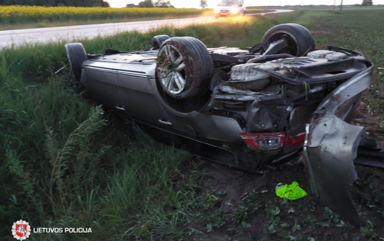 Prieš dešimtą vakaro, Biržų rajone, krašto kelyje Kupiškis–Vabalninkas–Biržai (danga šlapia), nuo kelio vingyje nuvažiavo ir apvirto ant stogo „Volkswagen“ markės automobilis. Nukentėjo jį vairavęs neblaivus 49 metų vyras (0,72 promilės).
