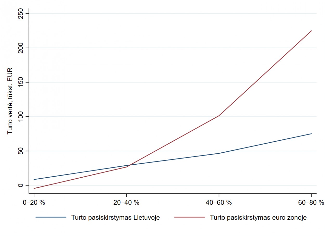 Tyrimas atskleidė, kad Lietuvos namų ūkiai turi sukaupę vidutiniškai 84,3 tūkst. Eur vertės turto. Tai maždaug dviem trečdaliais mažiau už Europos vidurkį (229,2 tūkst. Eur). Tokie rezultatai neatrodo stebinantys, nes praėjusio amžiaus antrojoje pusėje gyventojai senosiose Europos Sąjungos šalyse turtą kaupė rinkos ekonomikos, o Lietuvoje ir kitose posovietinėse šalyse – planinės ekonomikos sąlygomis.