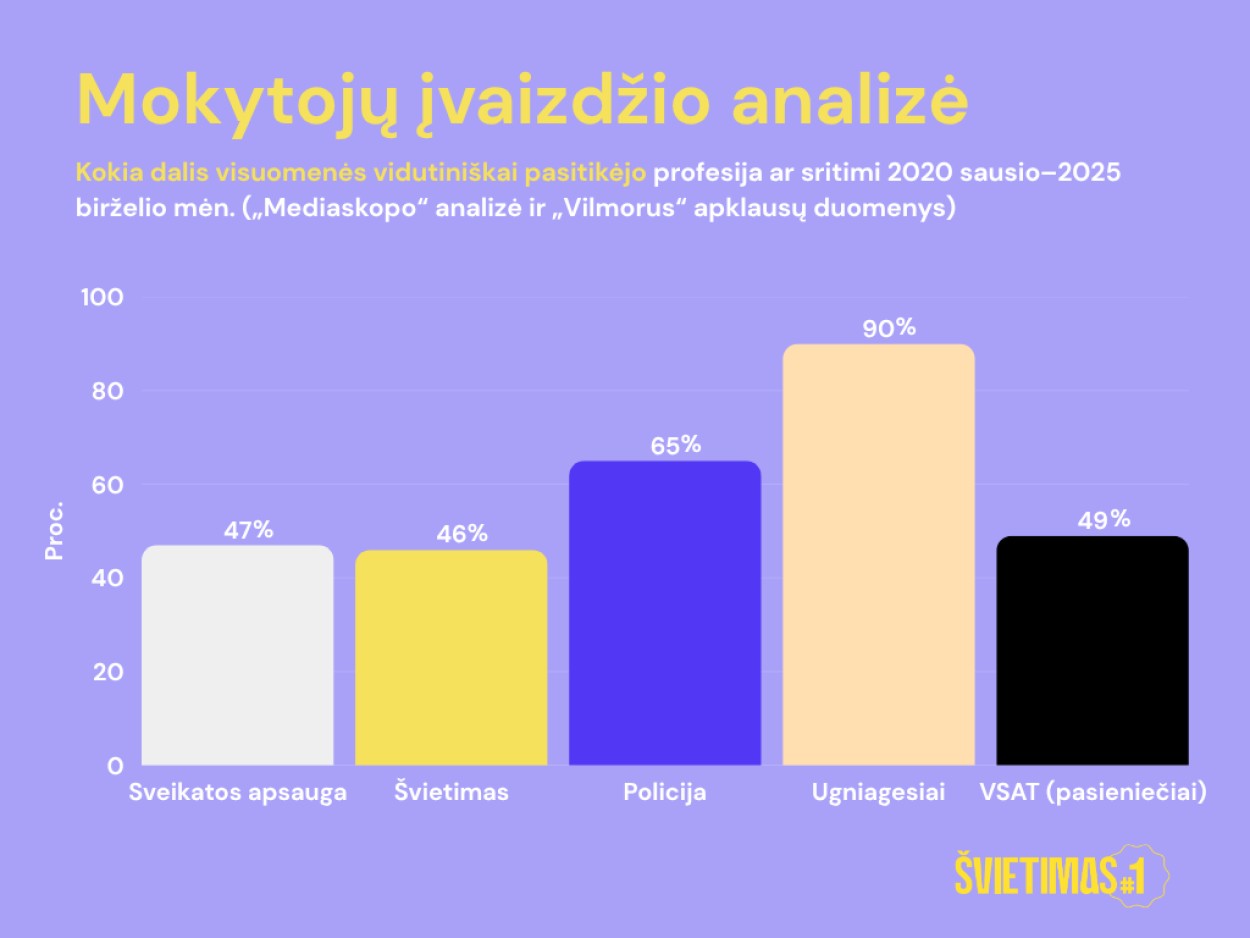 Pasak „Švietimas #1” vadovės, tokia mokytojų savijauta ir informacinis fonas susiję su prastu švietimo įvaizdžiu ir žemu visuomenės pasitikėjimu. „Vilmorus“ duomenimis, per pastaruosius penkerius metus švietimu vidutiniškai pasitikėjo tik 46 proc. Lietuvos gyventojų.