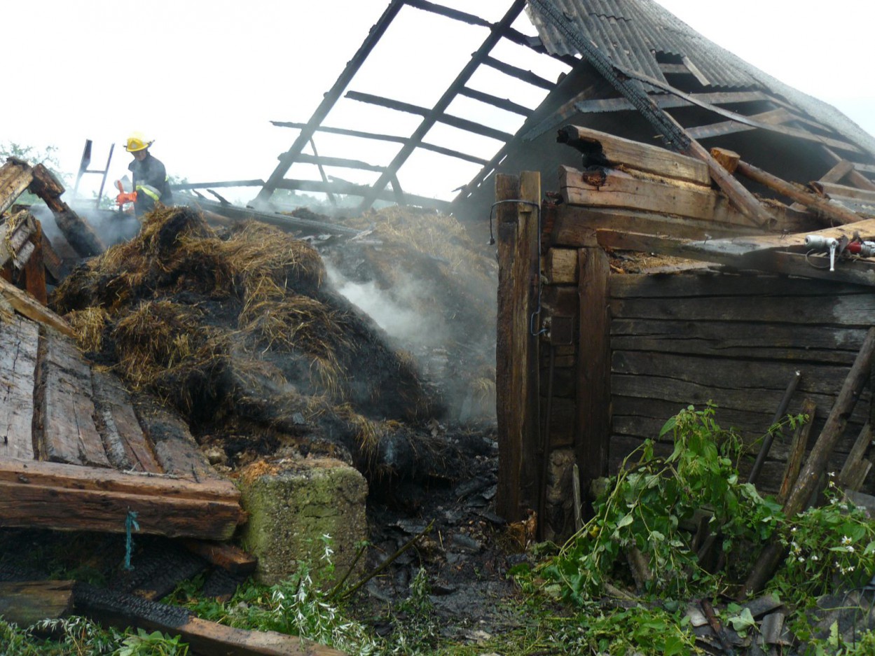 Gaisro metu nudegė apie 30 kv. m. stogo, pradegė perdanga, apdegė apie 10 kv. m. sienų, apdegė ir buvo perkasta apie 8 tonas šieno.