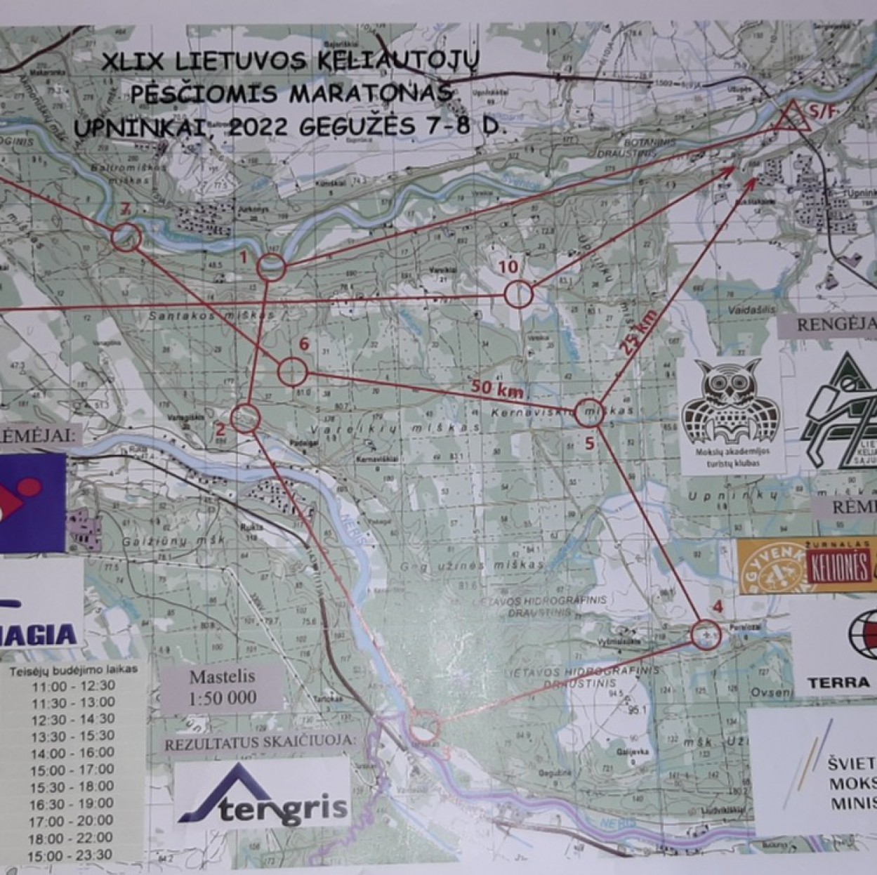 Pirmieji 25 ar 50 km buvo „įskaitiniai“, juos tiesiog reikėjo nueiti aplankant visus punktus, tačiau laikas nebuvo fiksuojamas. Naktiniame ir sekmadienio ryto etapuose jau buvo fiksuojamas laikas, laimėtojai dalį naktinio ir rytinio etapo nubėgo, kad greičiau pasiektų finišą. Atsigaivinti teko sekmadienio rytinėje trasoje iš Ukmergės rajono pusės perbridus Širvintos upę.