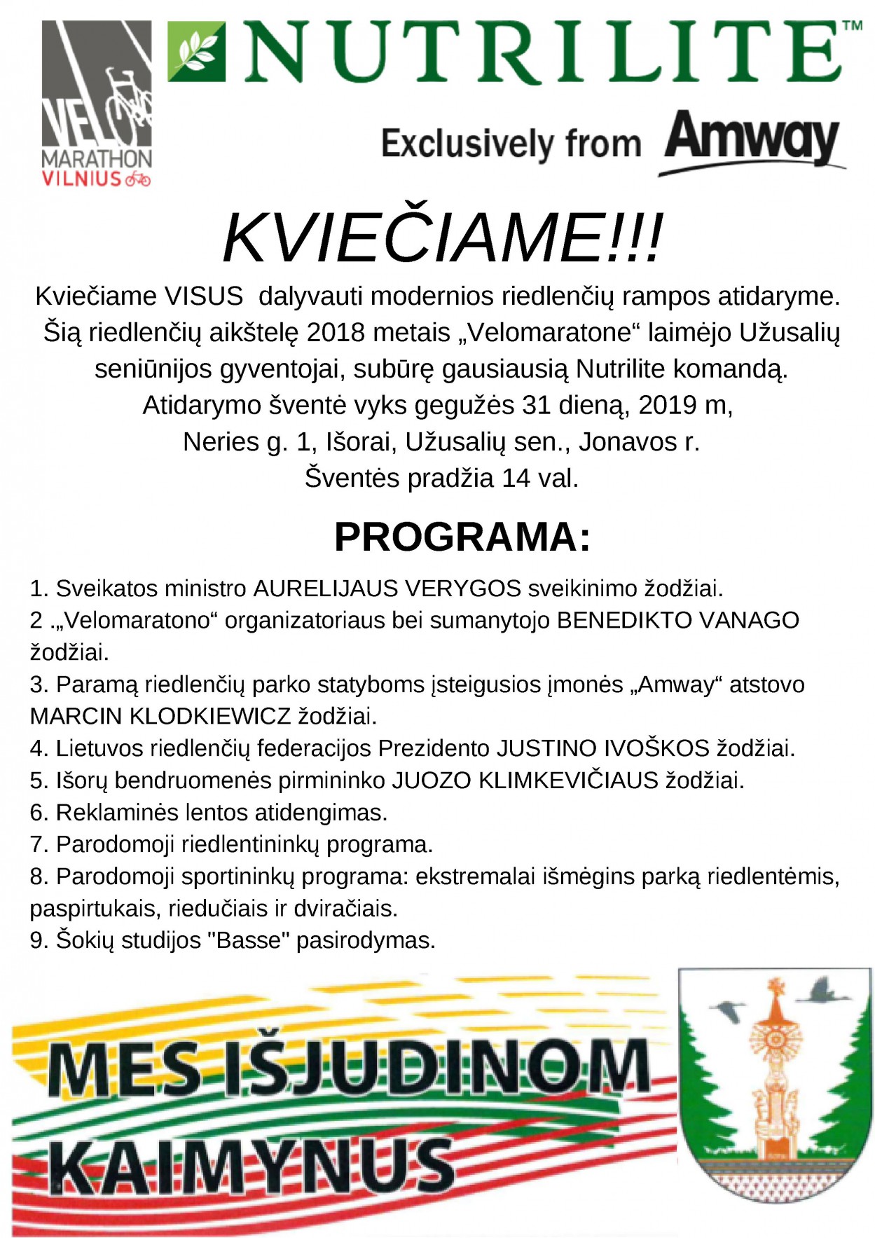 „Atvykite pas mus į svečius ir pamatysite, kad čia gyvena patys nuostabiausi, atkakliausi, energingiausi žmonės, kurie subūrė kaimynus į didžiausią komandą ir Velomaratone Vilniuje 2018 m. laimėjo riedlenčių parką, kuriame išbandyti savo galimybes galite ir jūs!