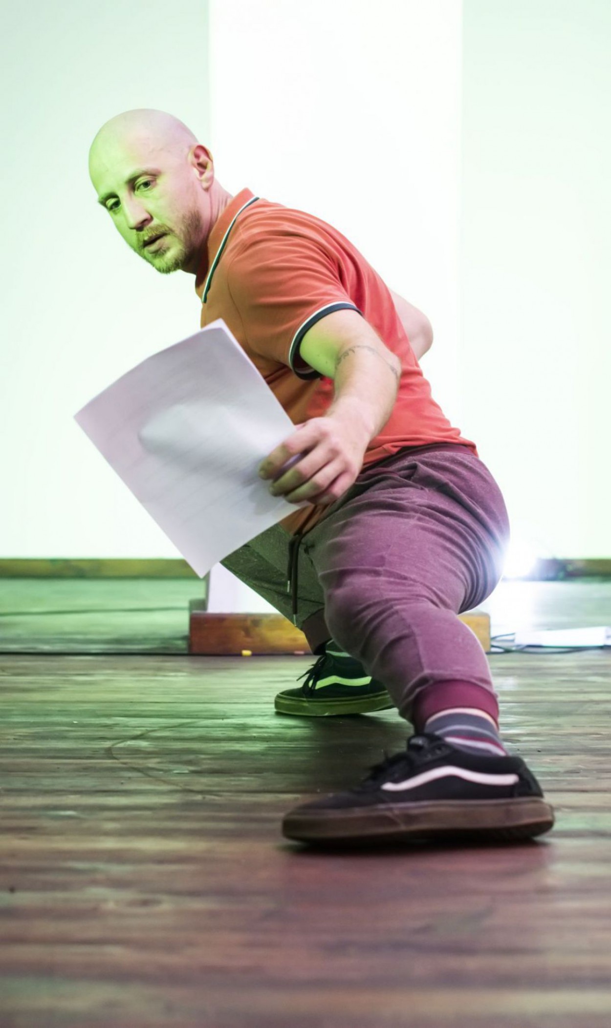 M. Jančiauskas: Tai sunkus klausimas. Mes su tuo susiduriame nuolat. Bet koks atkartojimas, kai yra užduotis, kai veiksmas vyksta scenoje, kad ir ką Marius bedarytų, iš dalies yra vaidyba: ar jis yra Marius, ar jis vaidina savo prisiminimą, ar dar kokią nors situaciją. Jeigu jį stebi dar keletas žmonių, tai ir yra vaidyba, nors ir personažas nekuriamas.