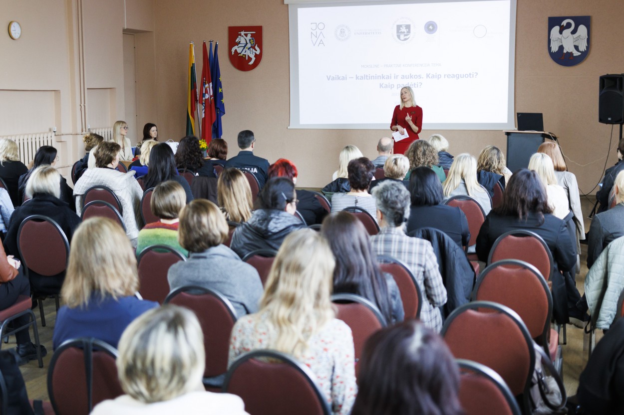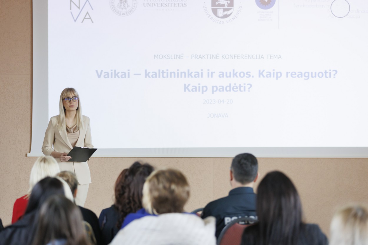 Jonavos rajono savivaldybės administracijos tarpinstitucinio bendradarbiavimo koordinatorė Evelina Darvidė šių metų balandžio 20 d. organizavo mokslinę-praktinę konferenciją tema „Vaikai – kaltininkai ir aukos. Kaip reaguoti? Kaip padėti?“