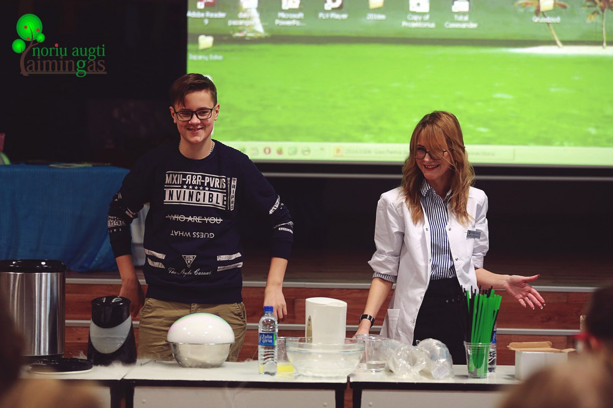 Tuo tarpu dėl netradicinės chemijos pamokos su "GASCHEMA LT" mokiniams reikėjo pasistengti labiau. Projekto „Noriu augti laimingas“ organizatoriai savo Facebook‘o paskyroje skelbė konkursą aštuntokams. J. Vareikio progimnazijos nuotrauka su mokyklos herbu surinko daugiausiai "patinka" ir laimėjo vaikams netradicinę chemijos pamoką su sausuoju ledu.